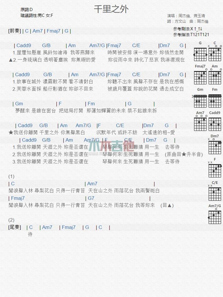 当前位置:琴谱网>吉他弹唱>千里之外_
