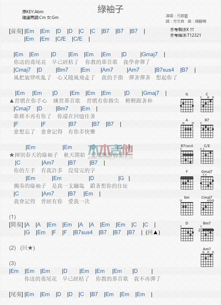 绿袖子_吉他谱 - 绿袖子 - 吉他弹唱谱