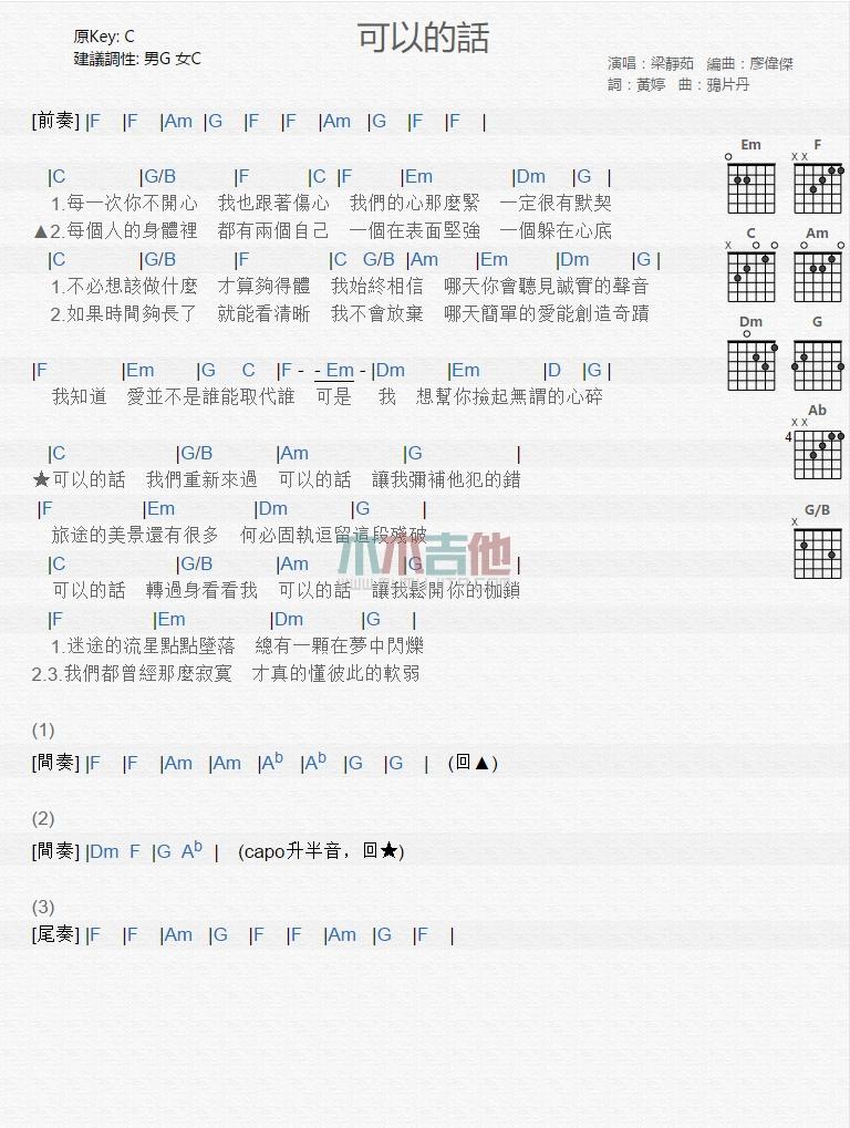 可以的话_吉他谱 - 可以的话 - 吉他弹唱谱