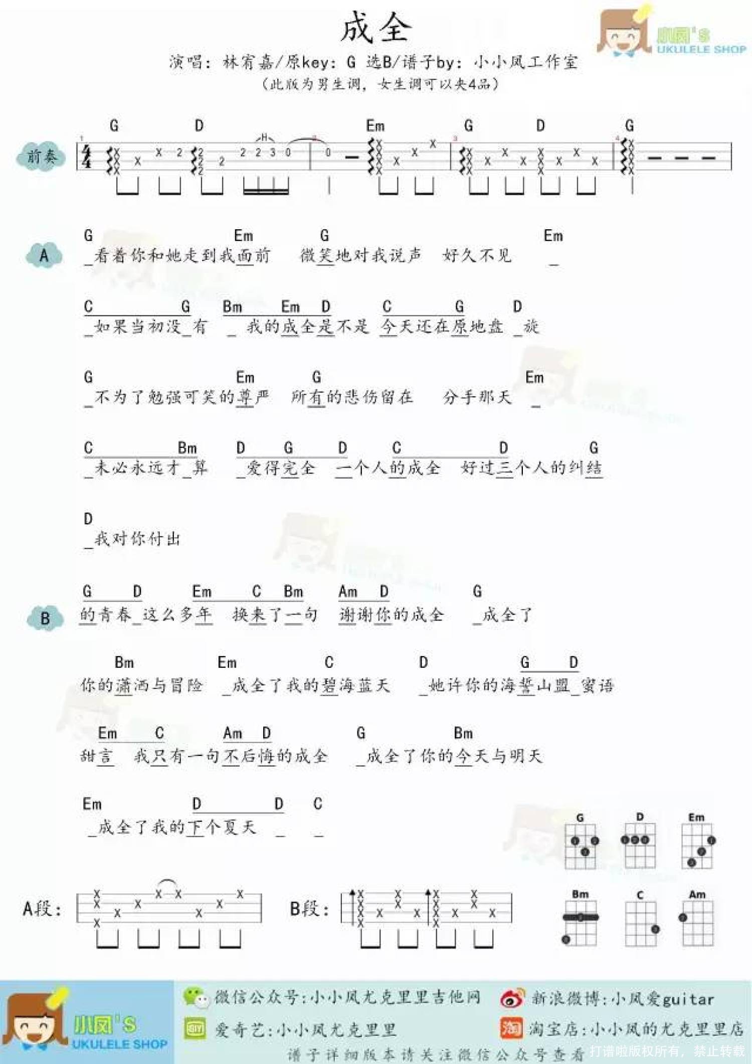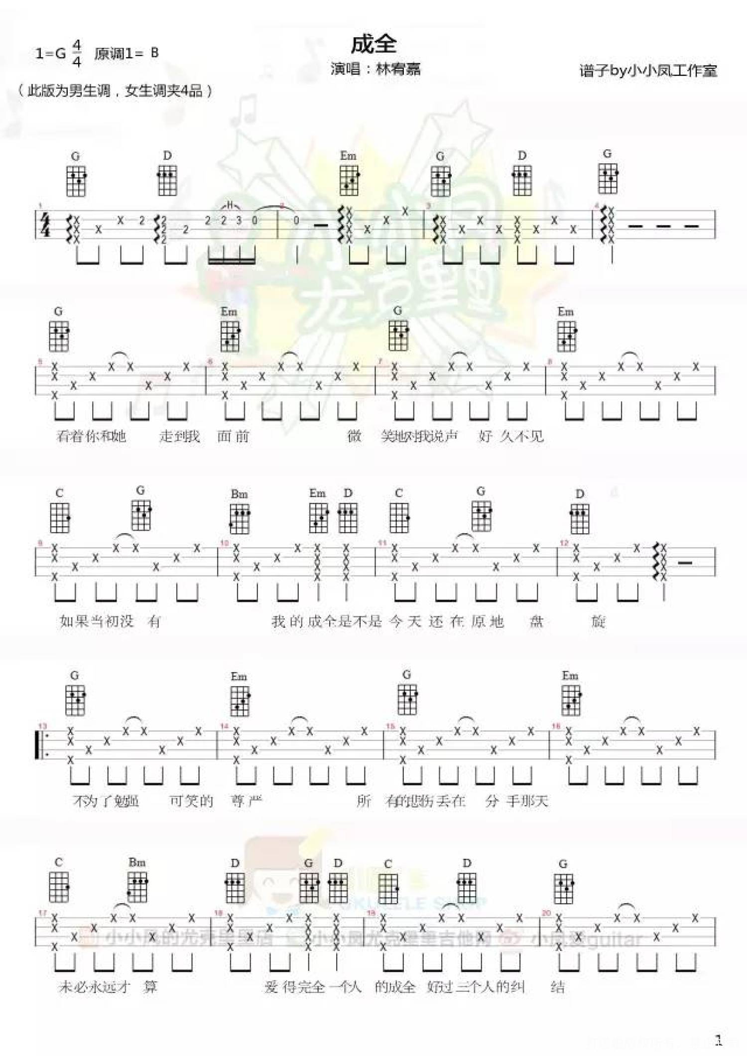 曲谱介绍: 林宥嘉《成全》_B调尤克里里谱