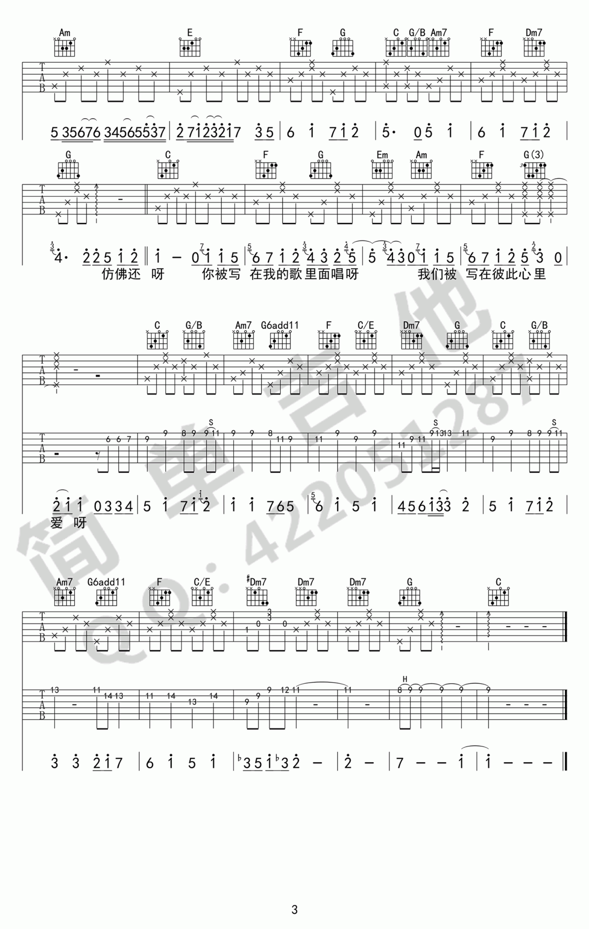 当前位置:琴谱网>吉他弹唱>你被写在我的歌里