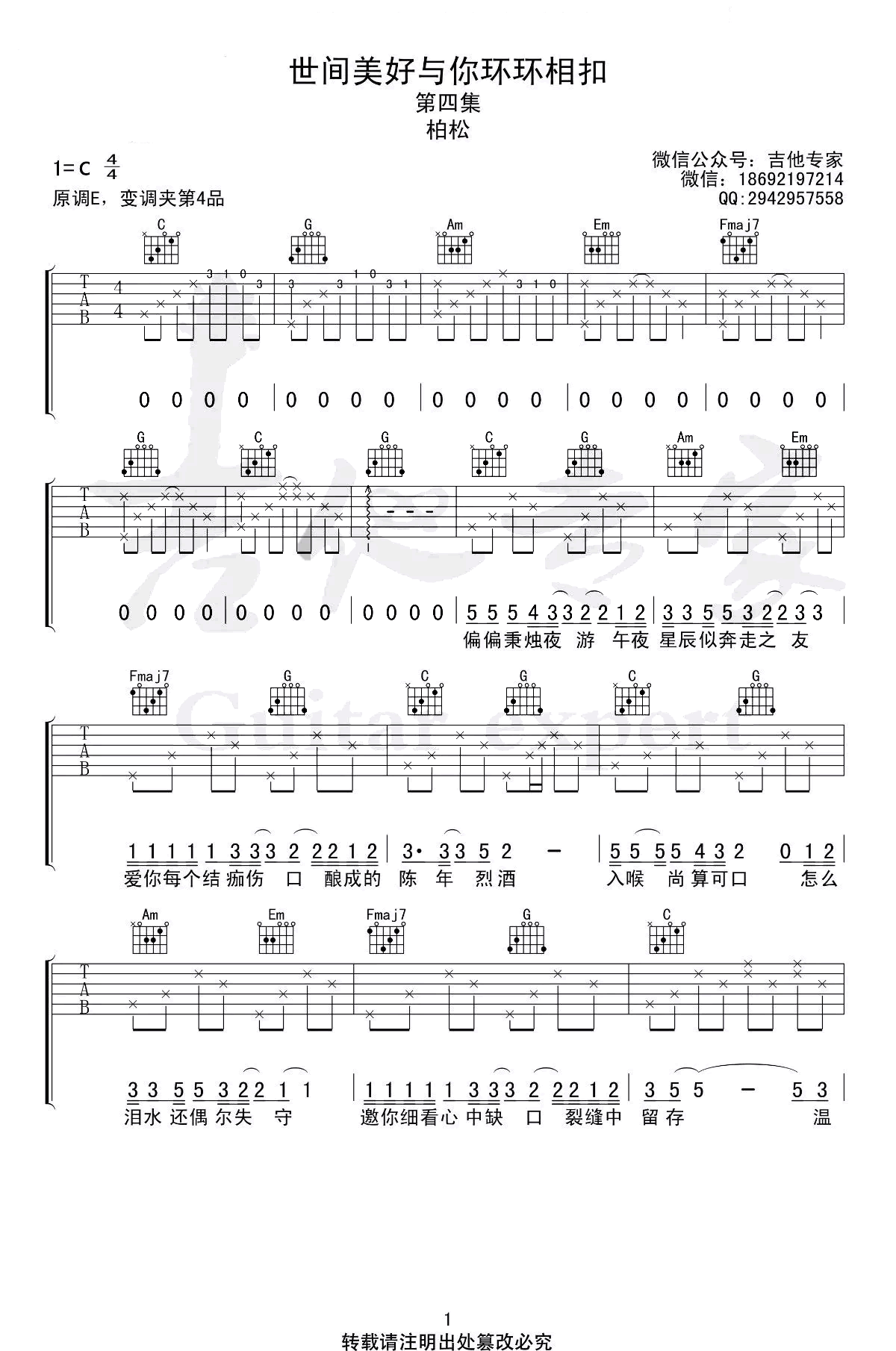 当前位置:琴谱网>吉他弹唱>世间美好与你环环相扣