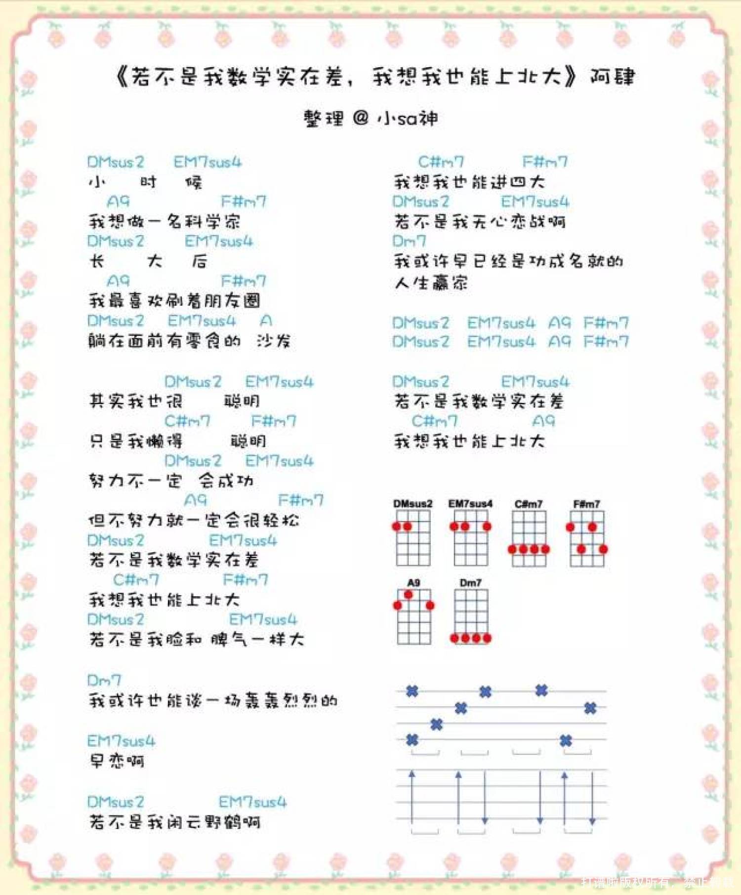 若不是我数学实在差,我想我也能上北大尤克里里谱 - 阿肆