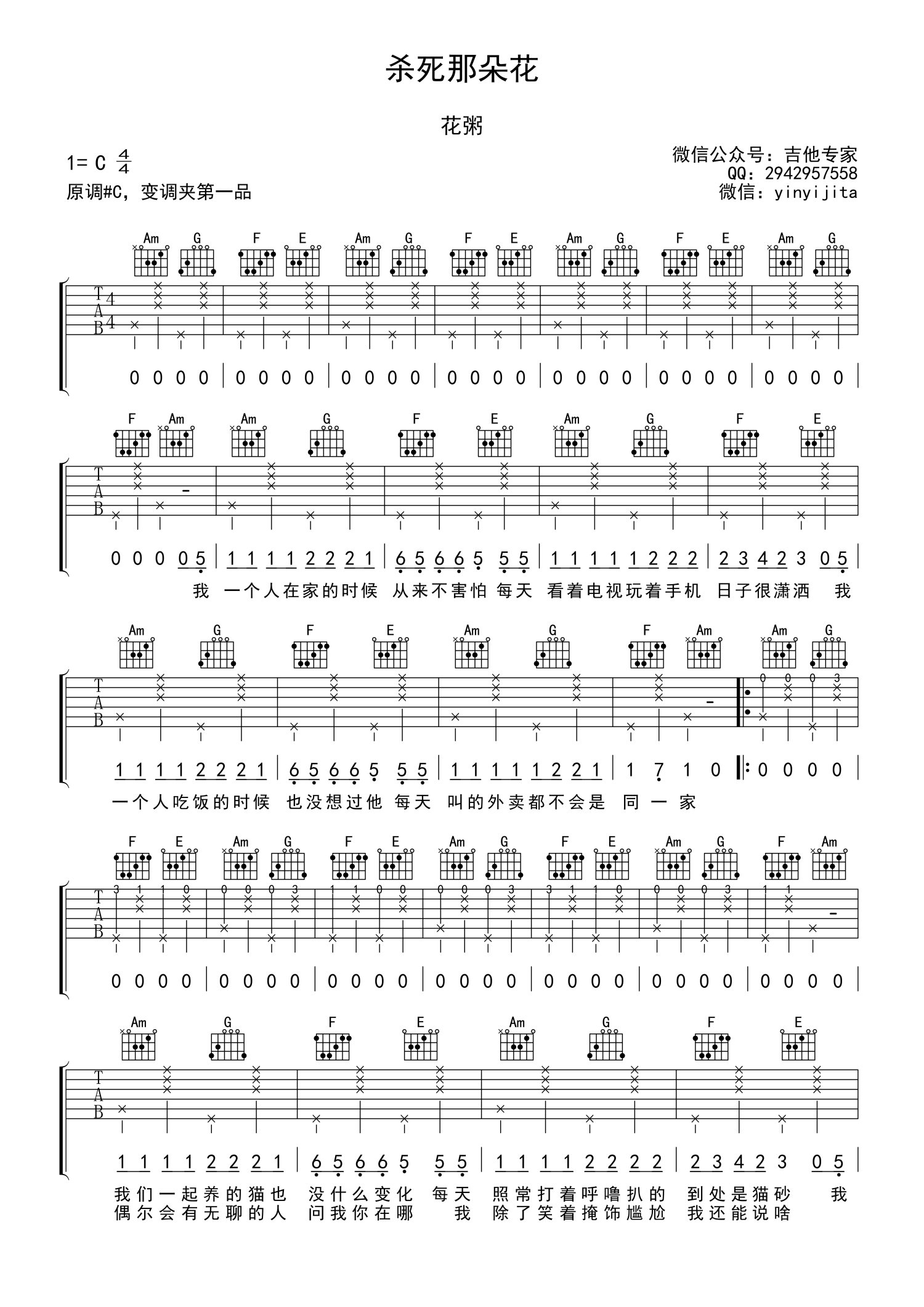 • 杀死那朵花吉他谱 - 花粥 - C调吉他弹唱谱第1张