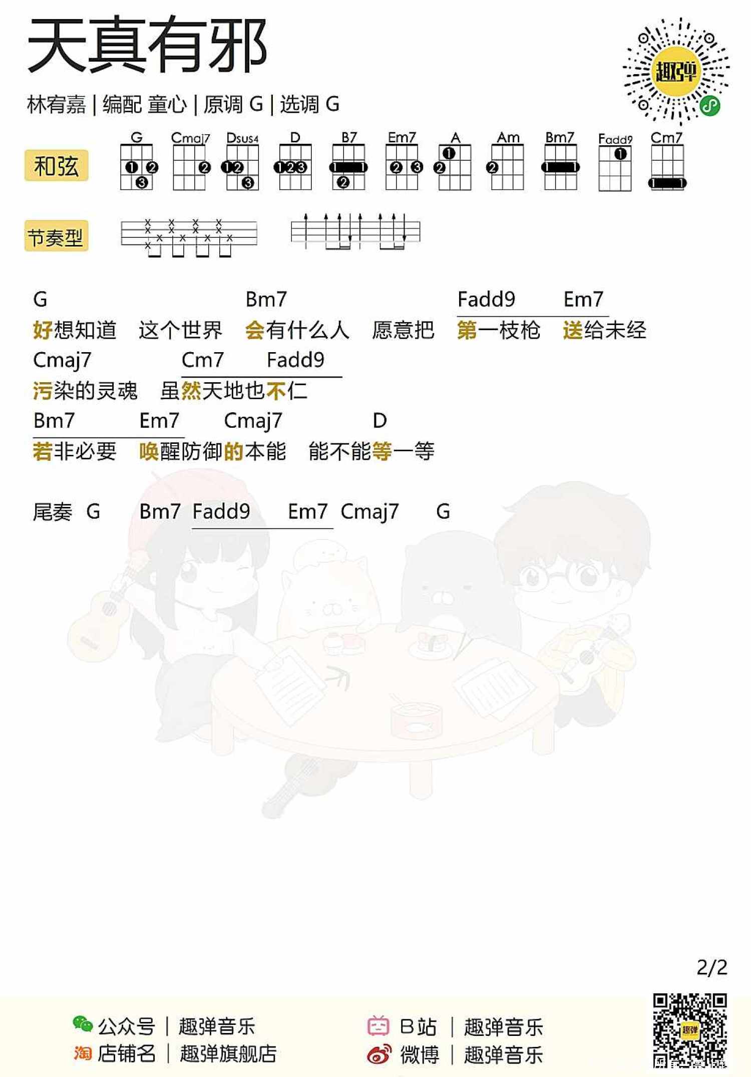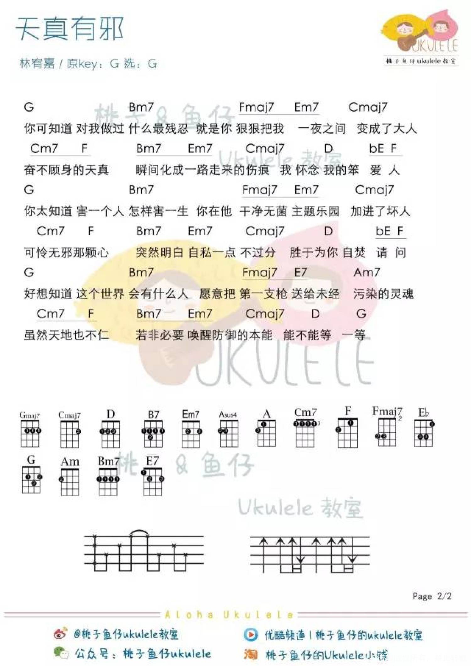 曲谱介绍: 林宥嘉《天真有邪》_G调尤克里里谱