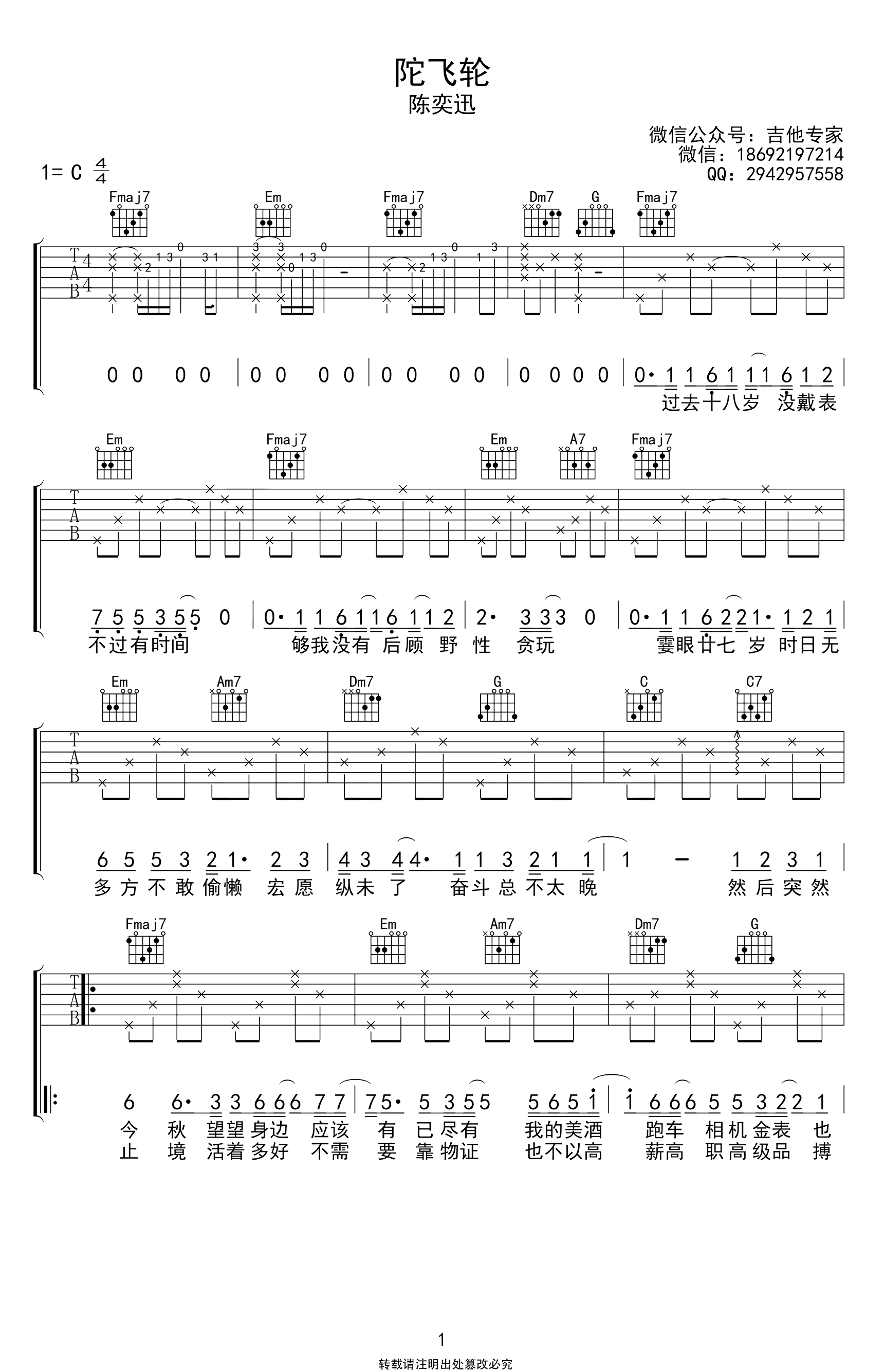 当前位置:琴谱网>吉他弹唱>陀飞轮