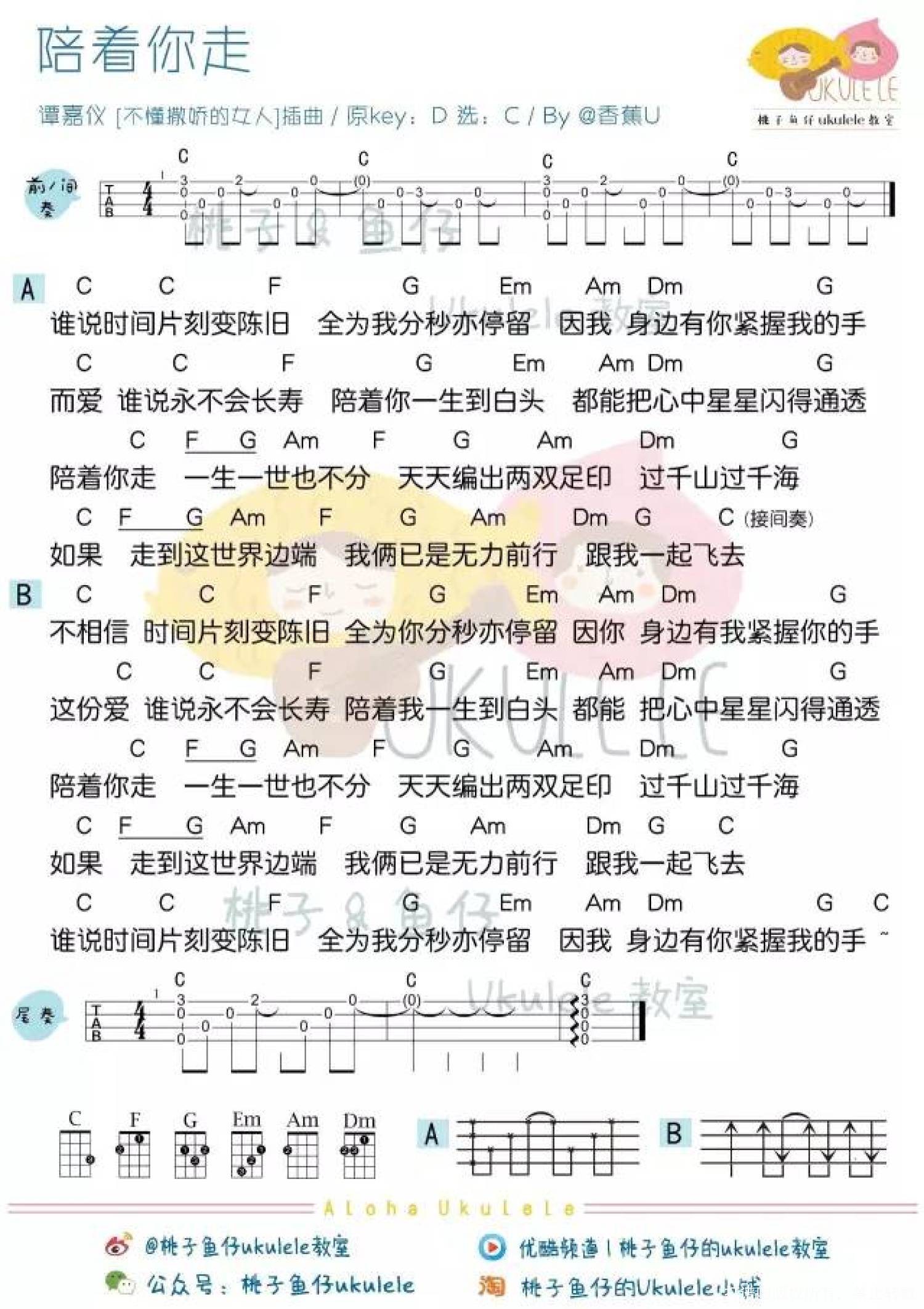 曲谱介绍: 卢冠延《陪着你走》_C调尤克里里谱