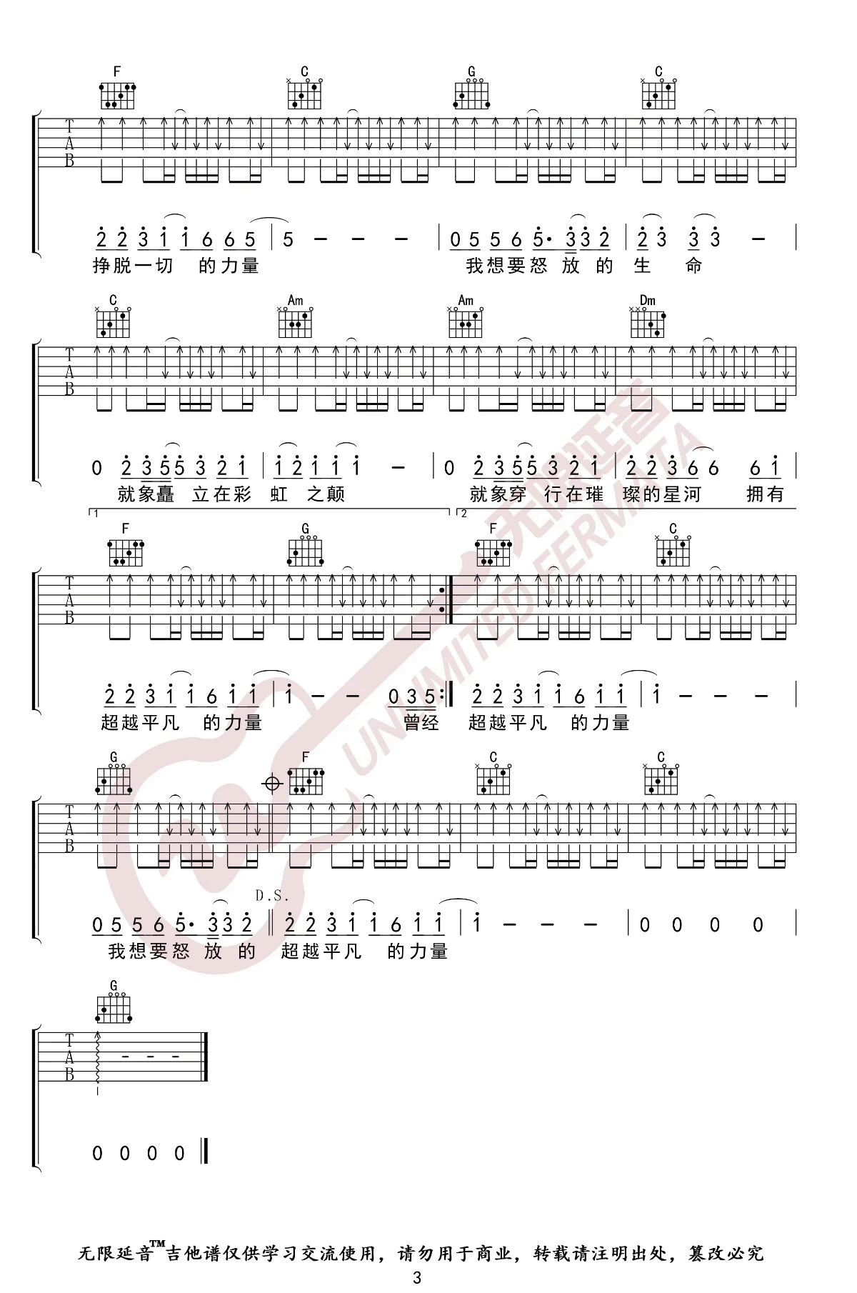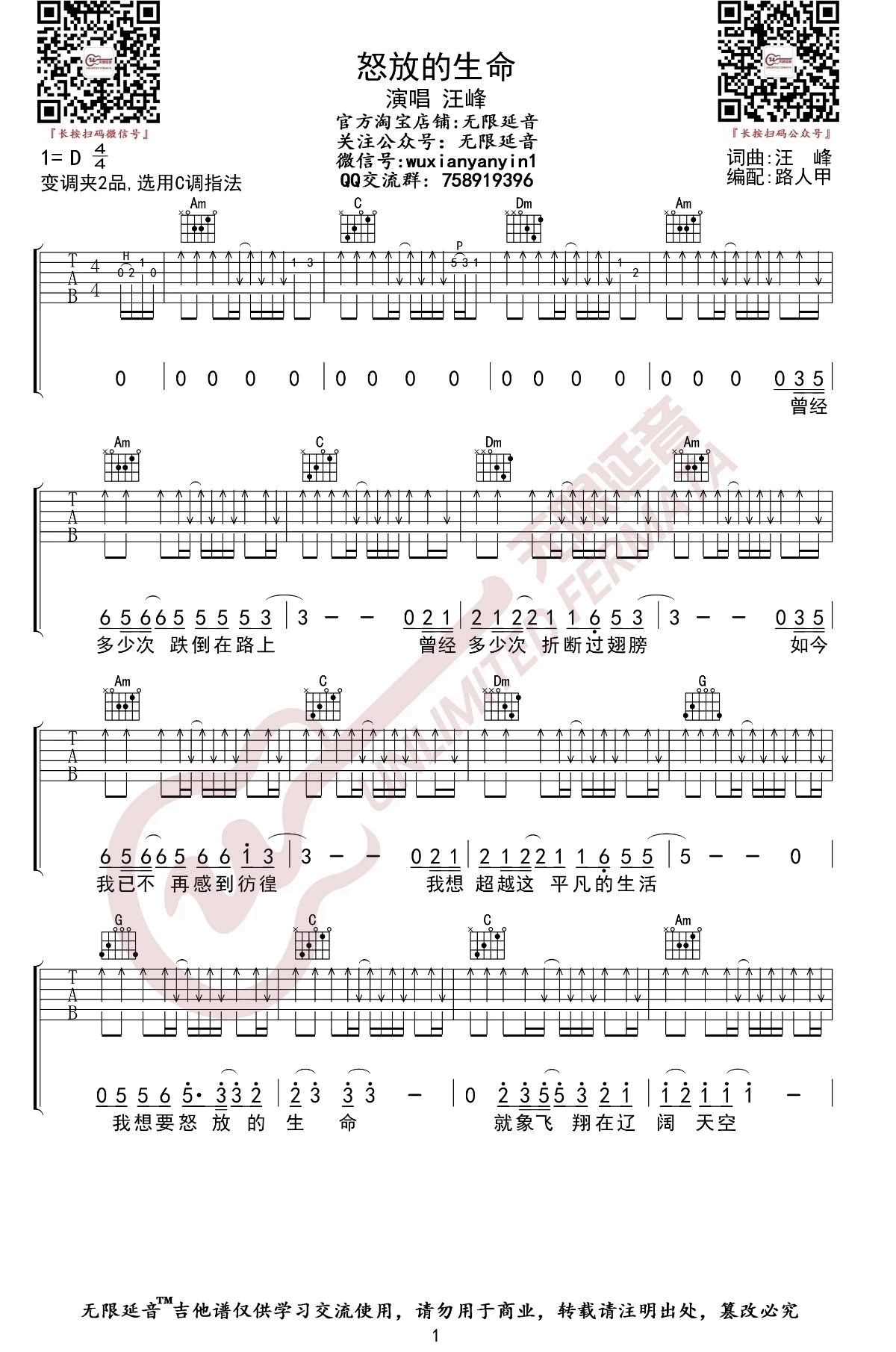曲谱介绍: 《怒放的生命》吉他谱_汪峰_C调弹唱六线谱_高清图片谱分享,《怒放的生命》是由汪峰演唱的一首歌曲,由汪峰作词,汪峰作曲。
