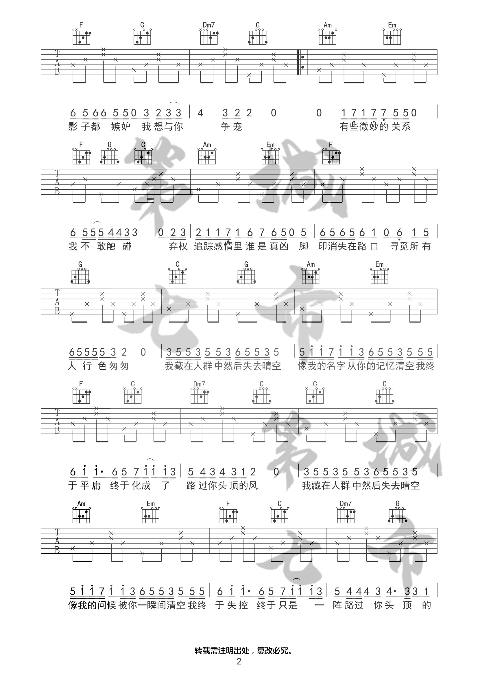 当前位置:琴谱网>吉他弹唱>你头顶的风