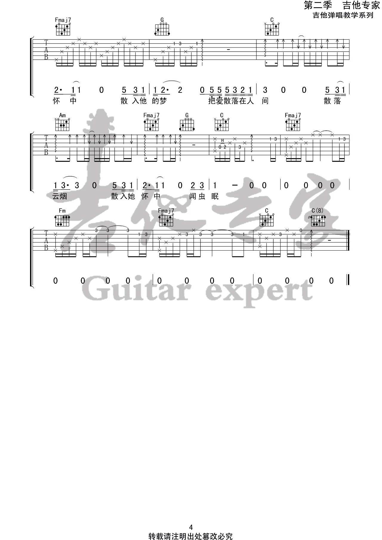 吉他弹唱C调来源:吉他专家197 浏览2024-02-04 12:08发布图谱共4页