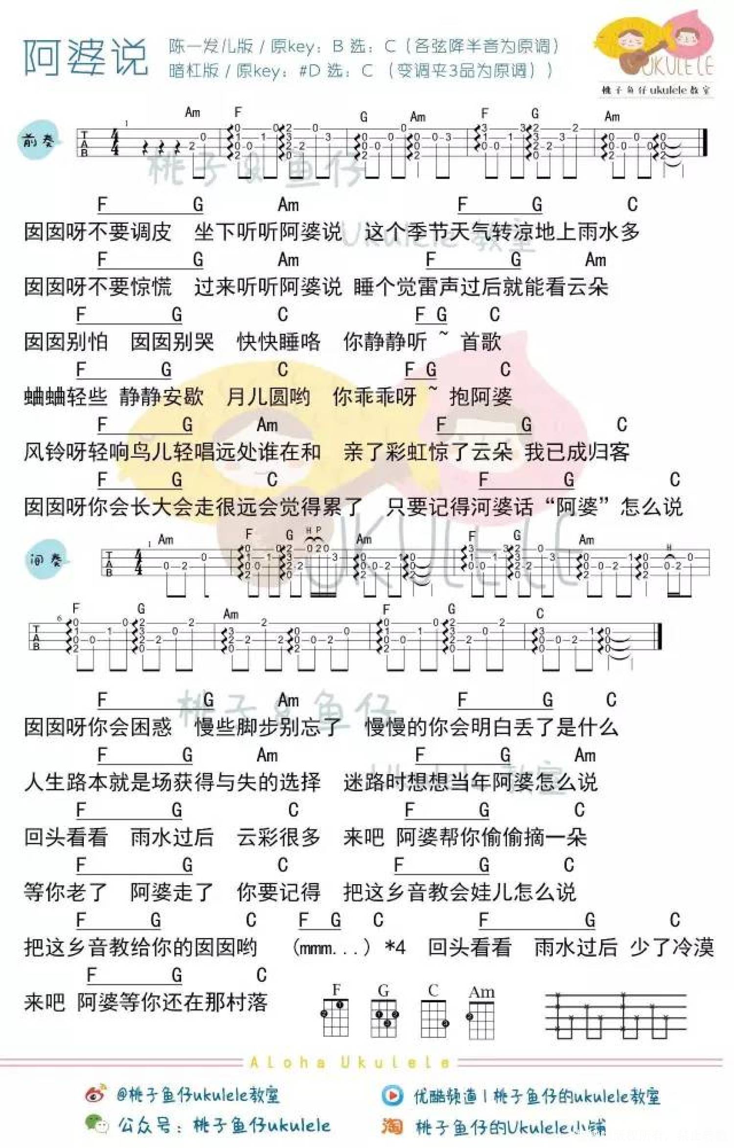 曲谱介绍: 陈一发儿、暗杠《阿婆说》_C调尤克里里谱