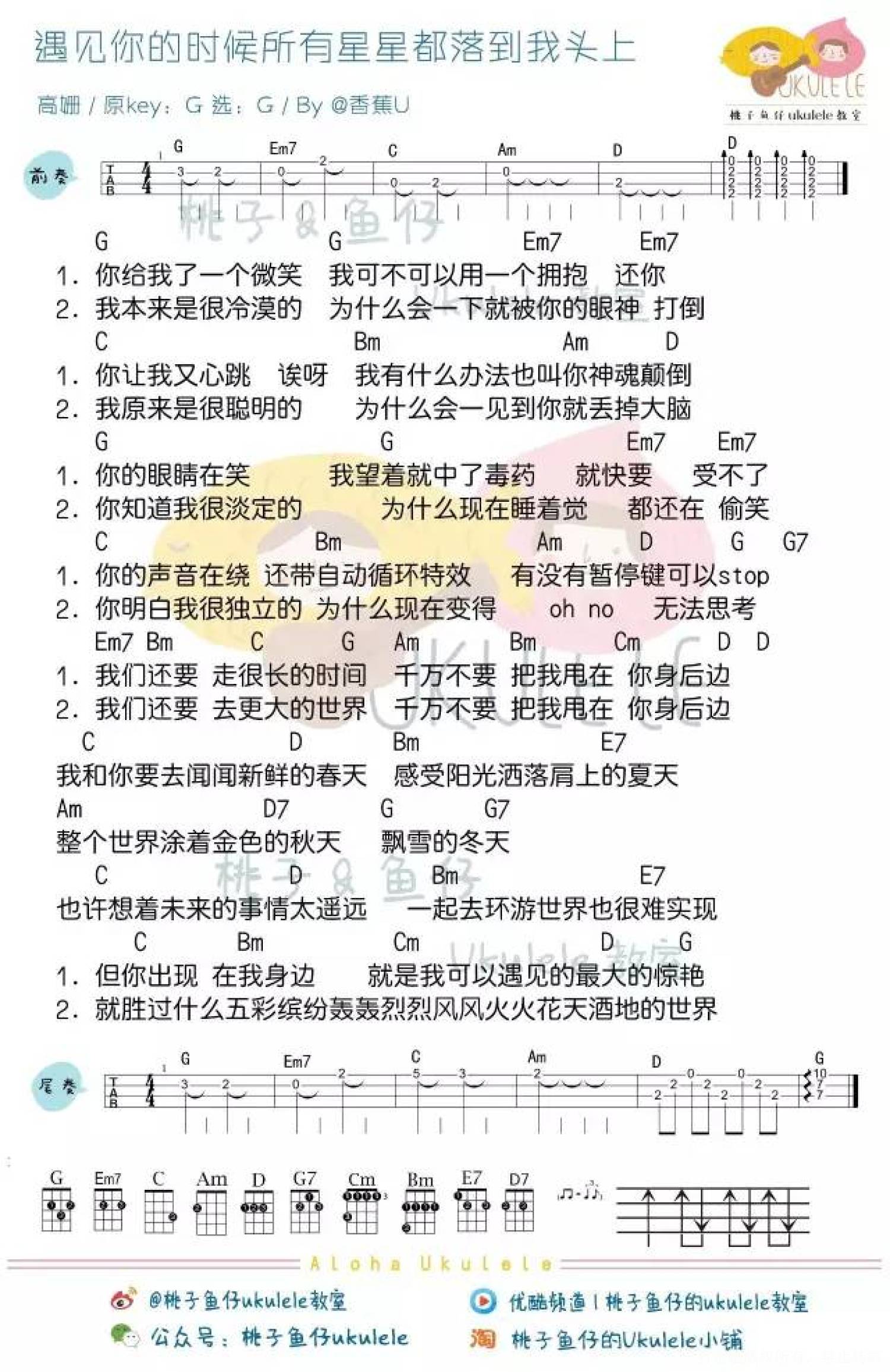 曲谱介绍: 高珊《遇见你的时候所有星星都落到我头上》_G调尤克里里谱