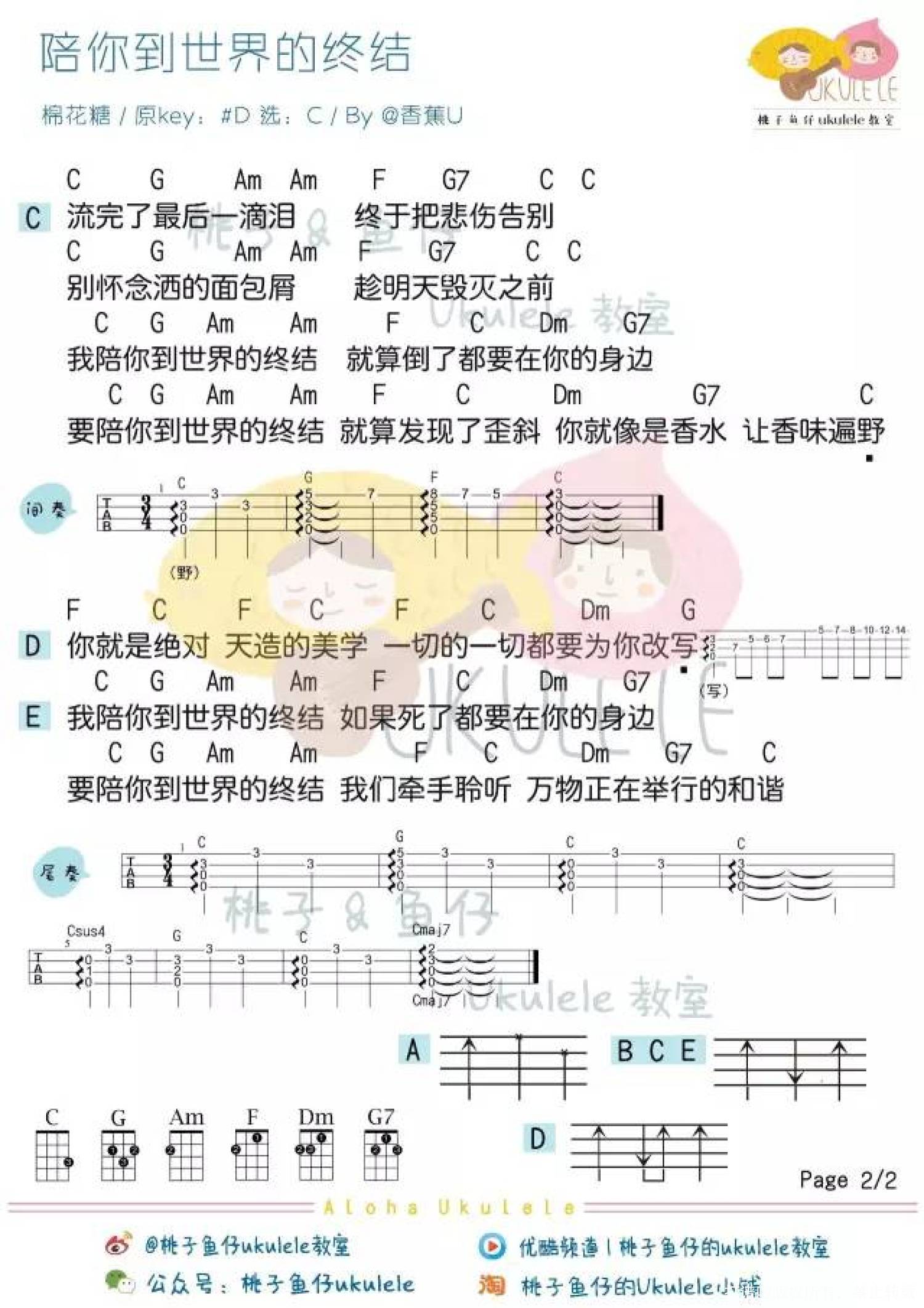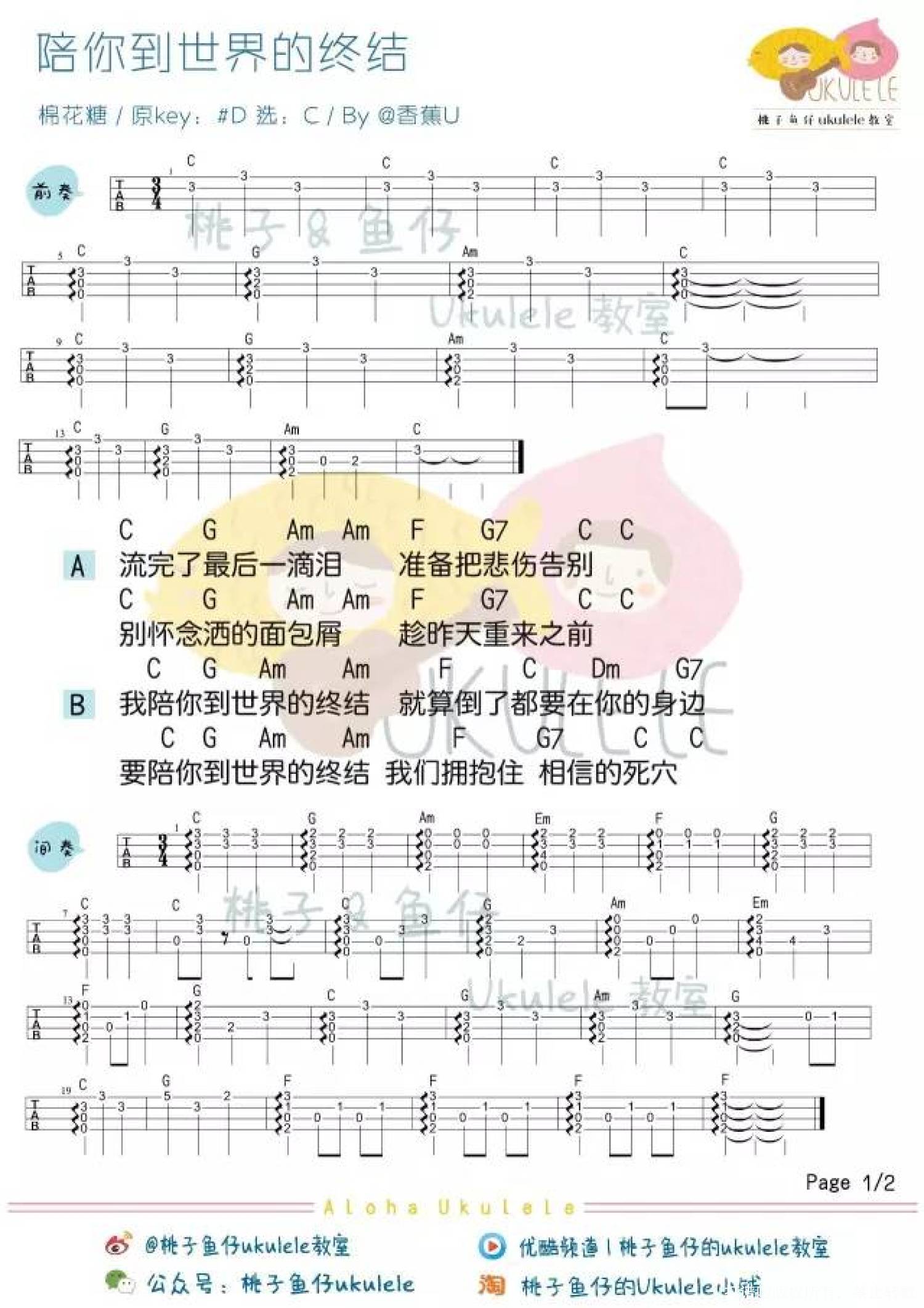 曲谱介绍: 棉花糖《陪你到世界的终结》_C调尤克里里谱
