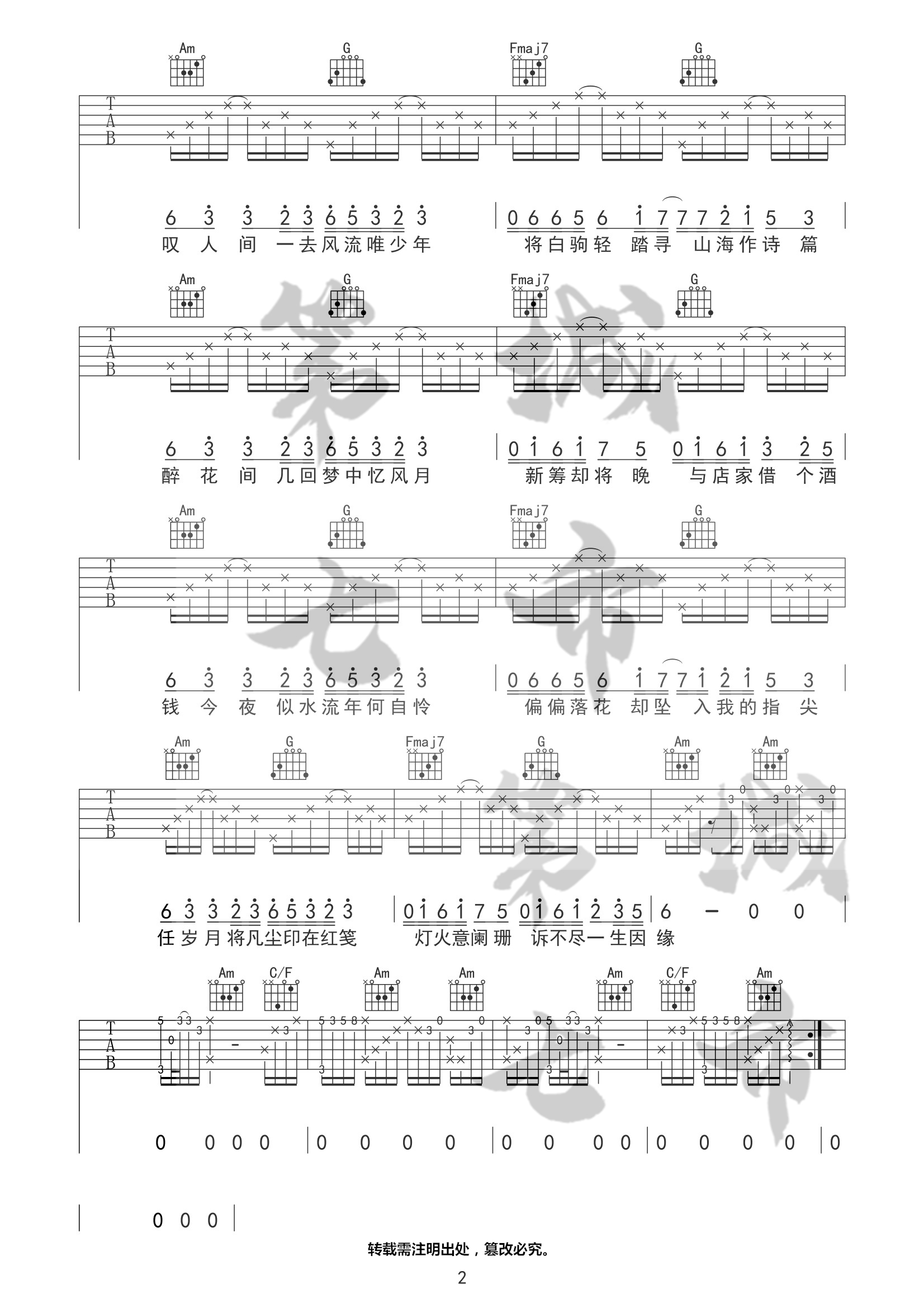 当前位置:琴谱网>吉他弹唱>人间惊鸿客