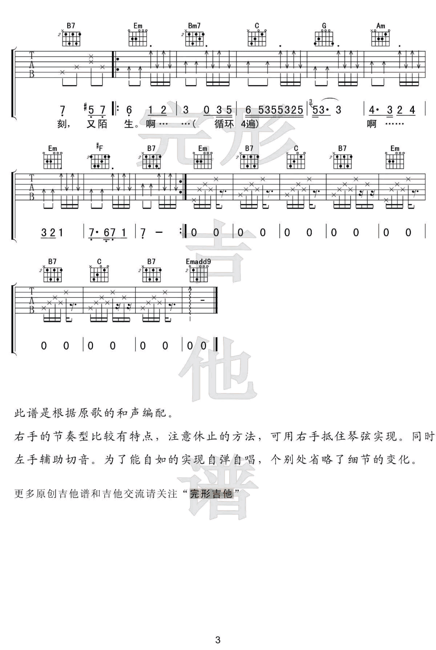吉他弹唱G调来源:完形吉他--沈亮1222 浏览2018-03-19 13:34发布图谱共3页