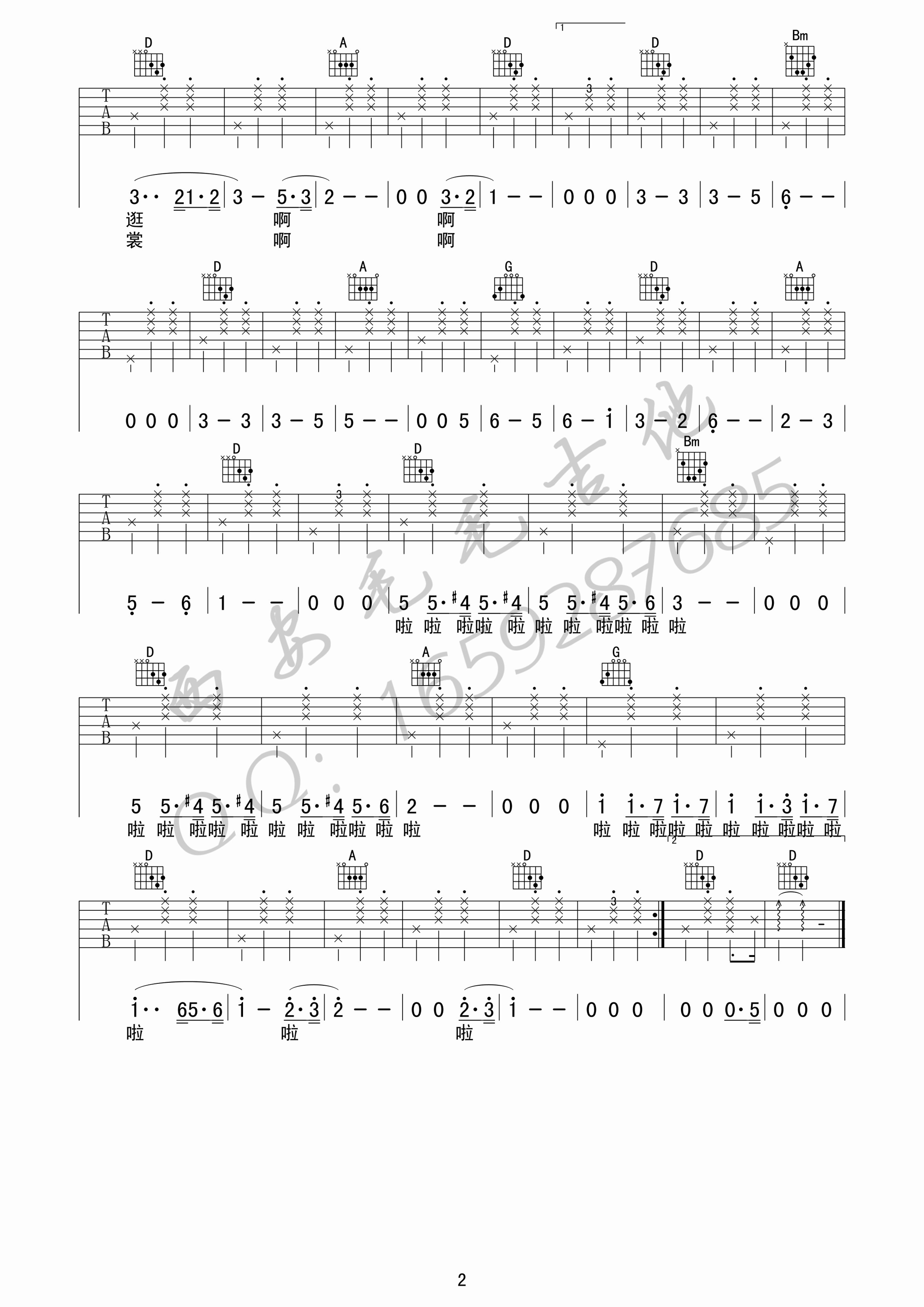 吉他弹唱D调来源:西安毛毛吉他230 浏览2024-02-04 13:02发布图谱共2页