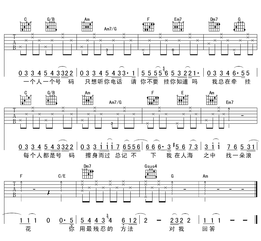 当前位置:琴谱网>吉他弹唱>号码