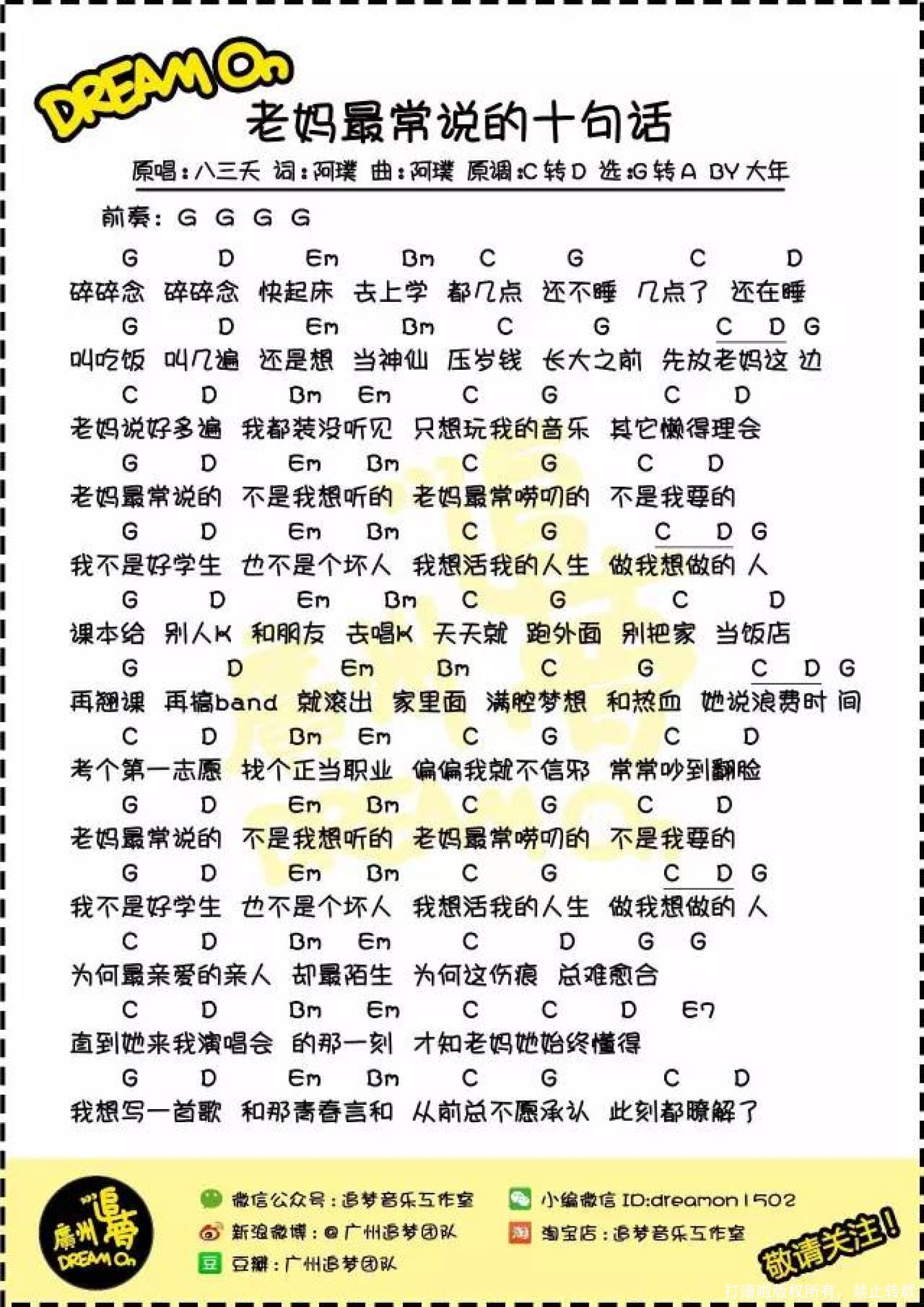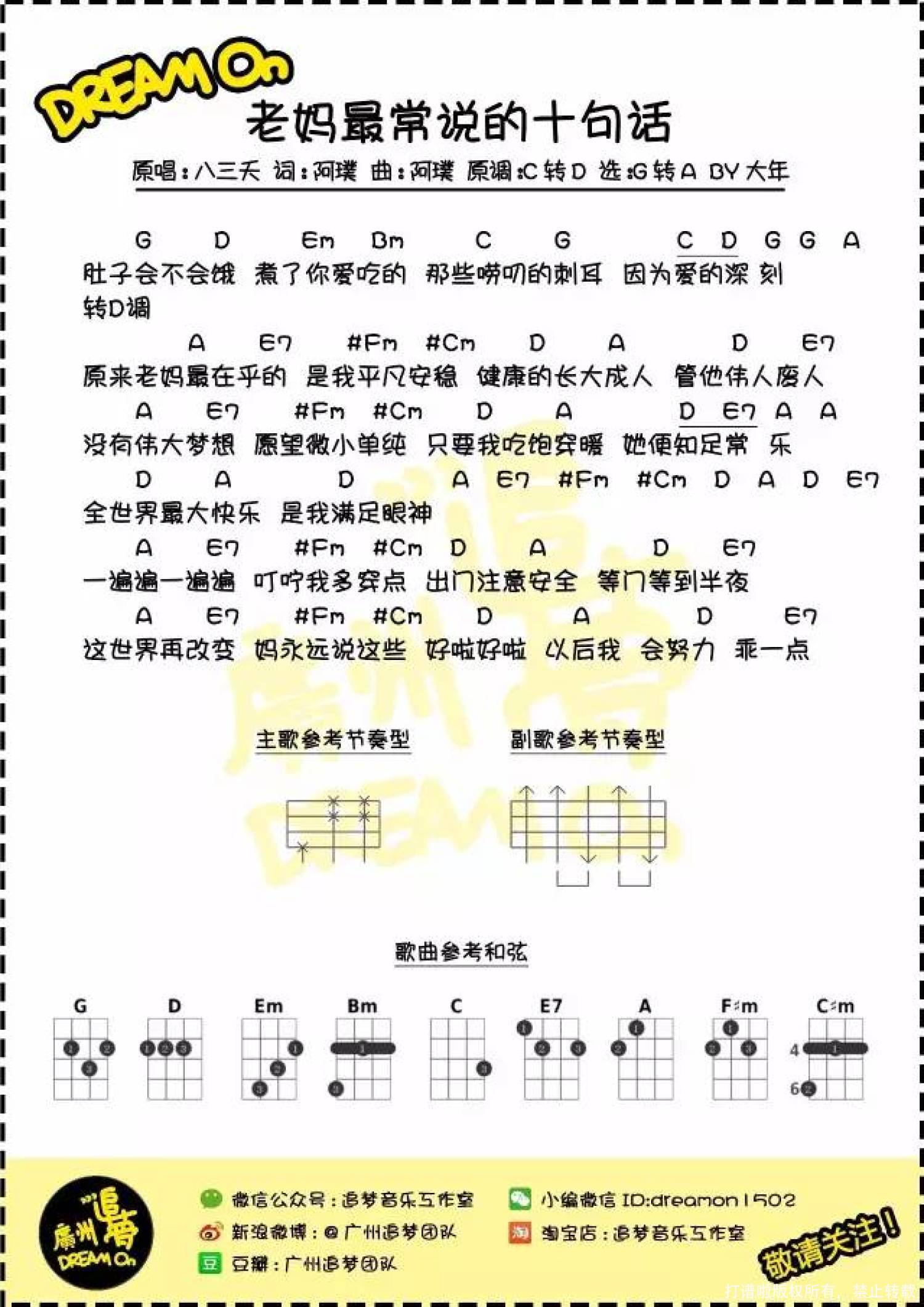 曲谱介绍: 八三夭《老妈最常说的十句话》_G调尤克里里谱