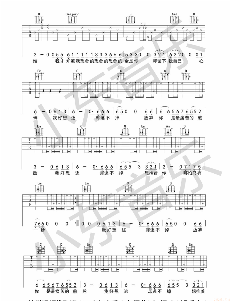 曲谱介绍: 候旭《逃》吉他弹唱谱,采用B调指法编配,小东音乐编配出品,共有3张高清图谱。