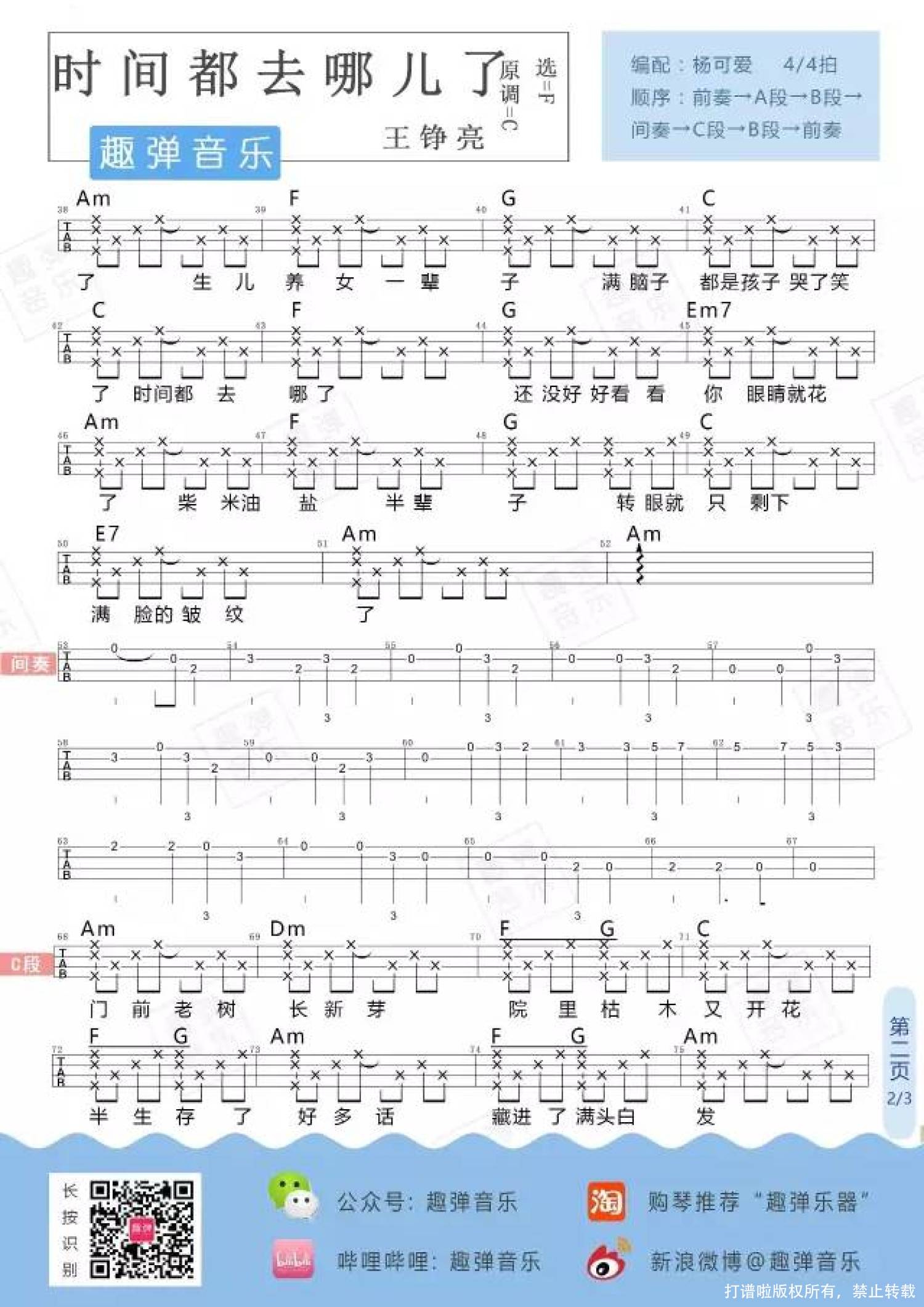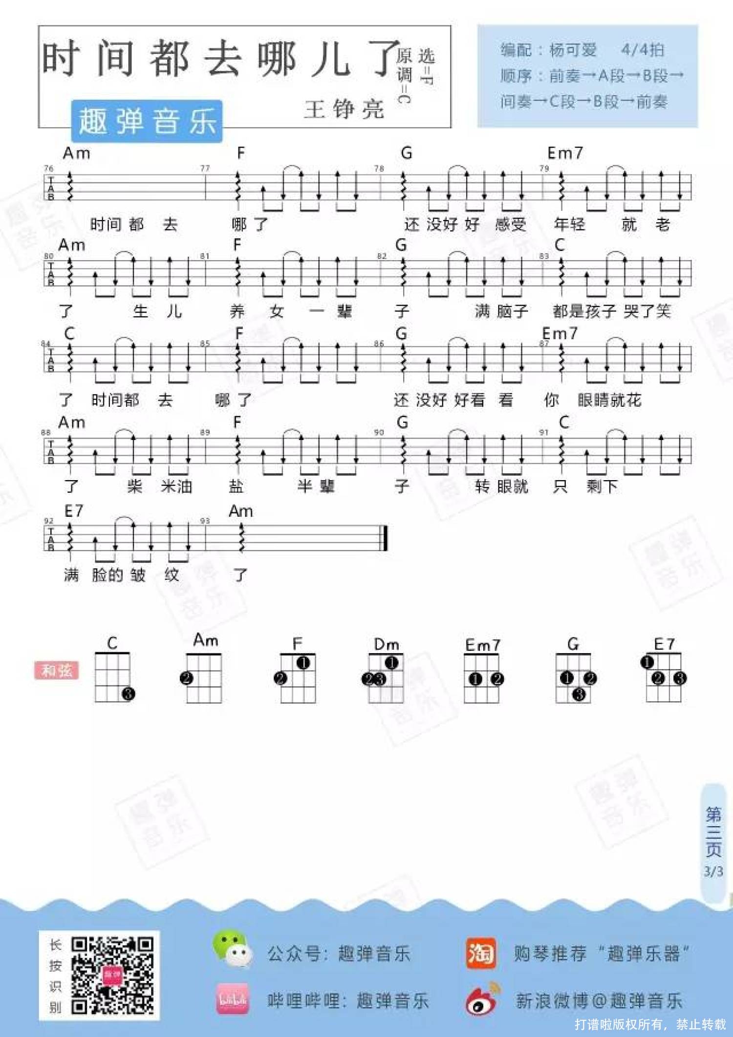 时间都去哪儿了尤克里里谱 - 王铮亮