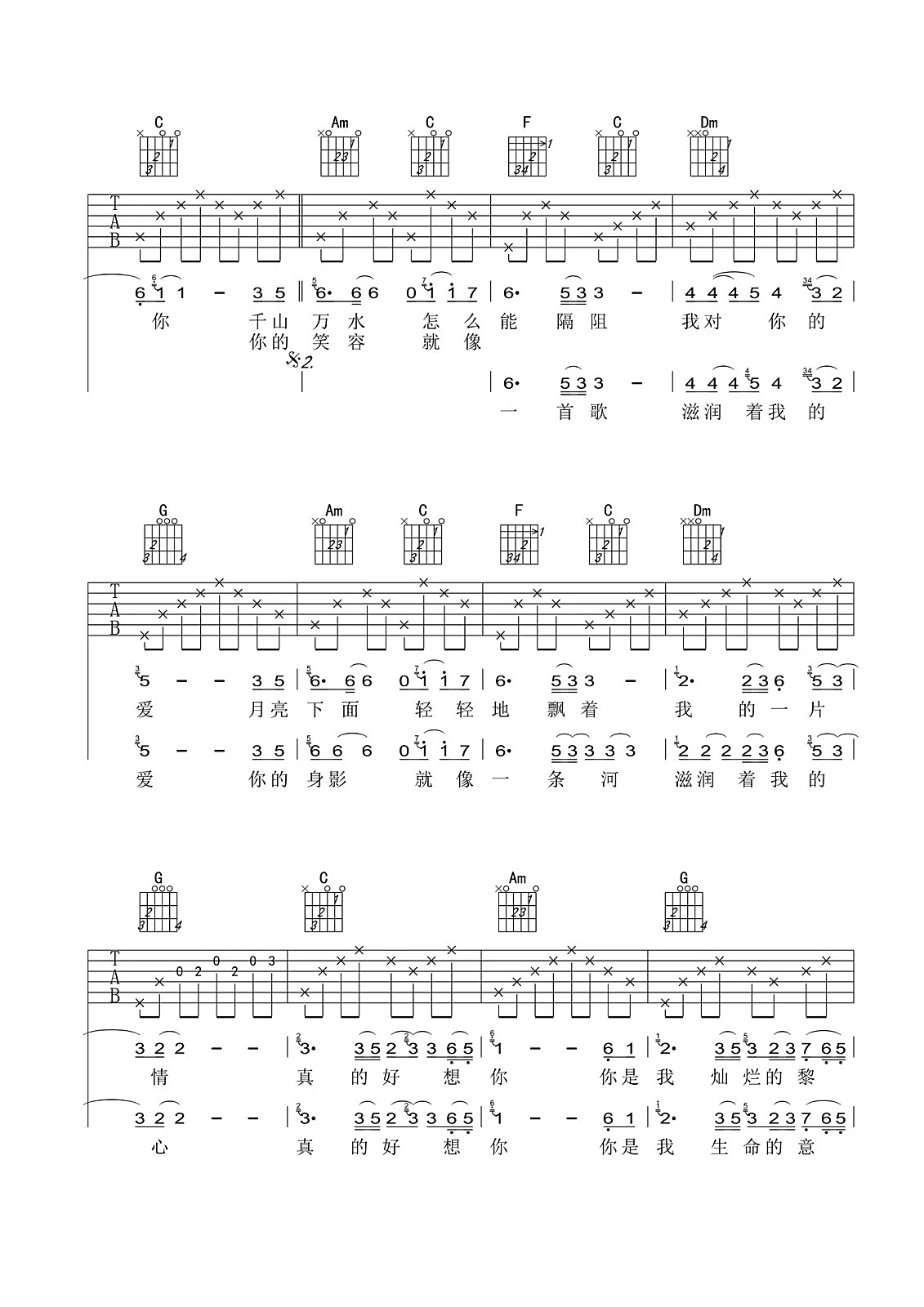 当前位置:琴谱网>吉他弹唱>真的好想你