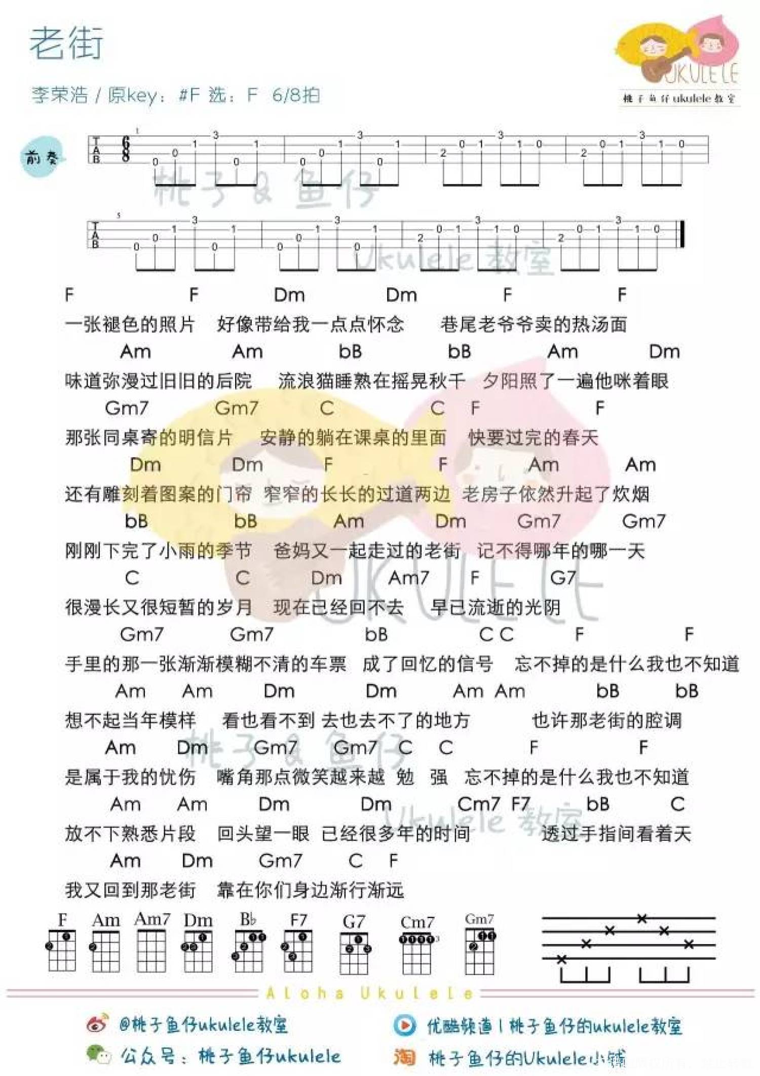 曲谱介绍: 李荣浩《老街》_F调尤克里里谱