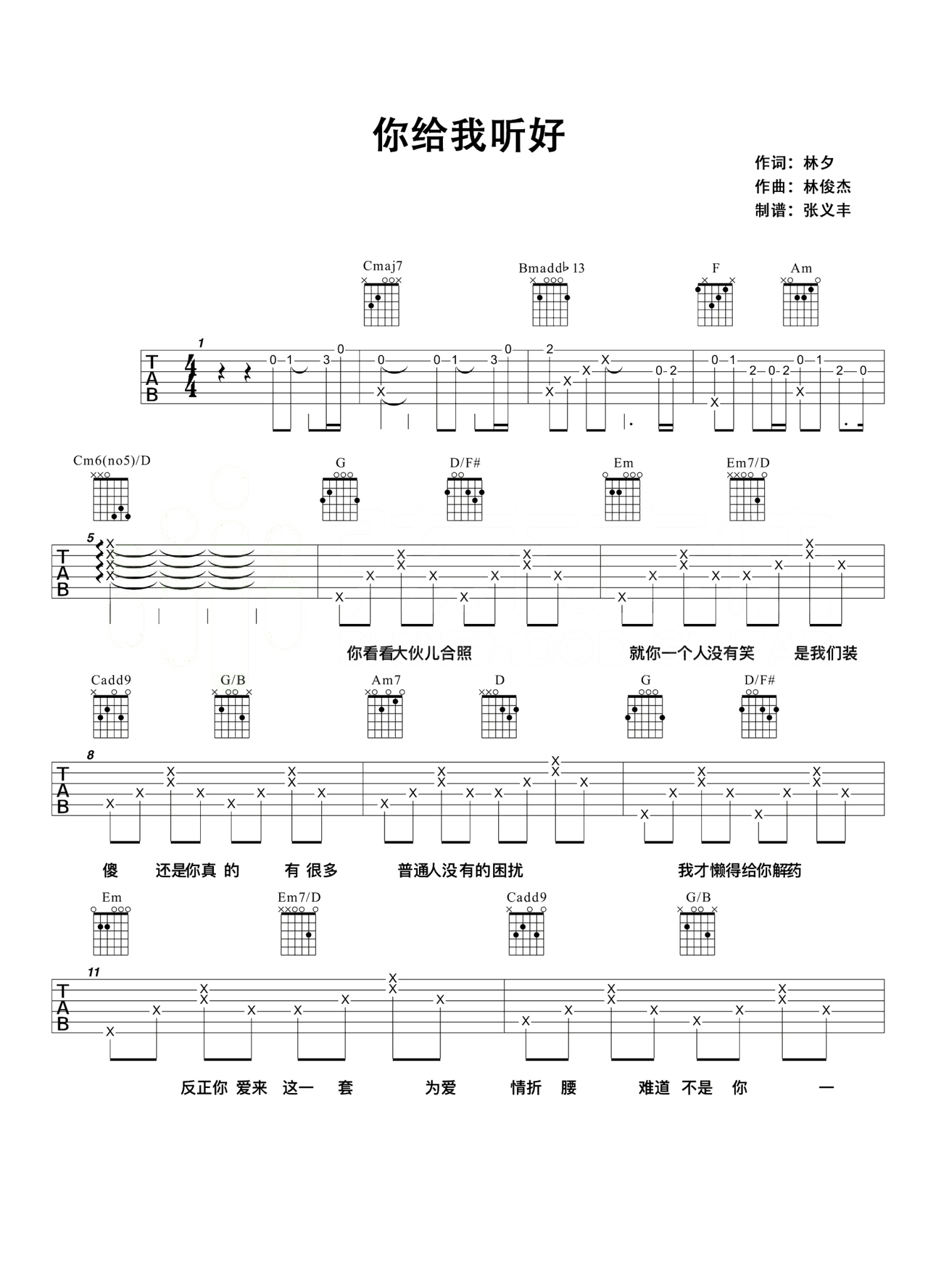 当前位置:琴谱网>吉他弹唱>你给我听好