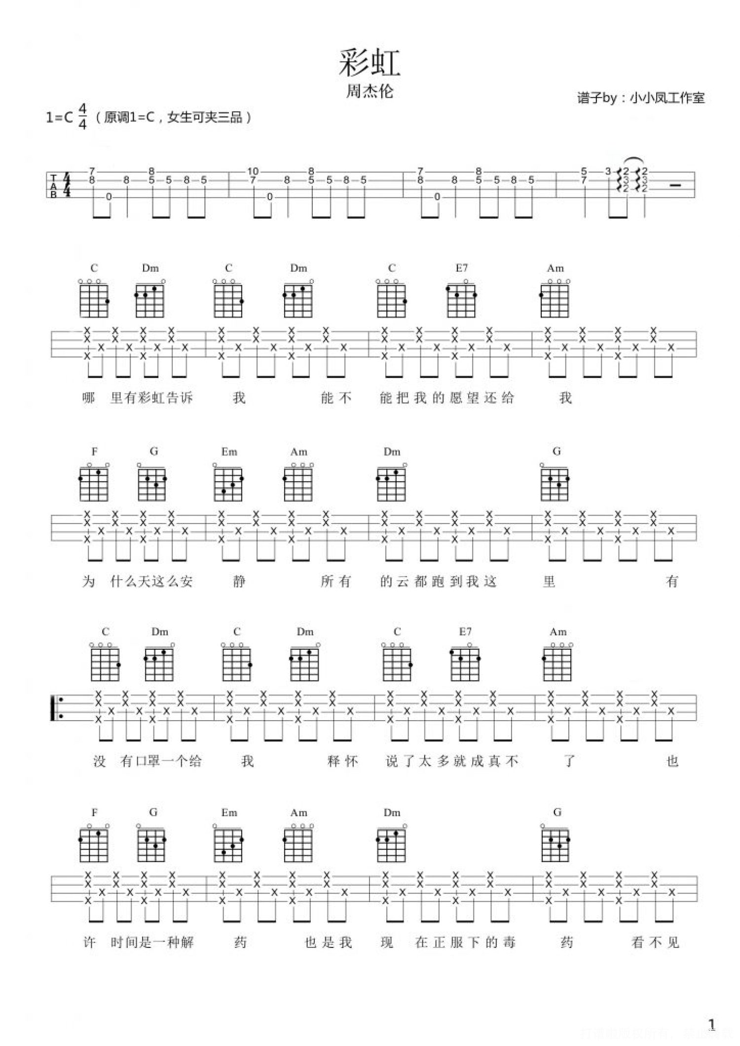 曲谱介绍: 周杰伦《彩虹》_C调尤克里里谱