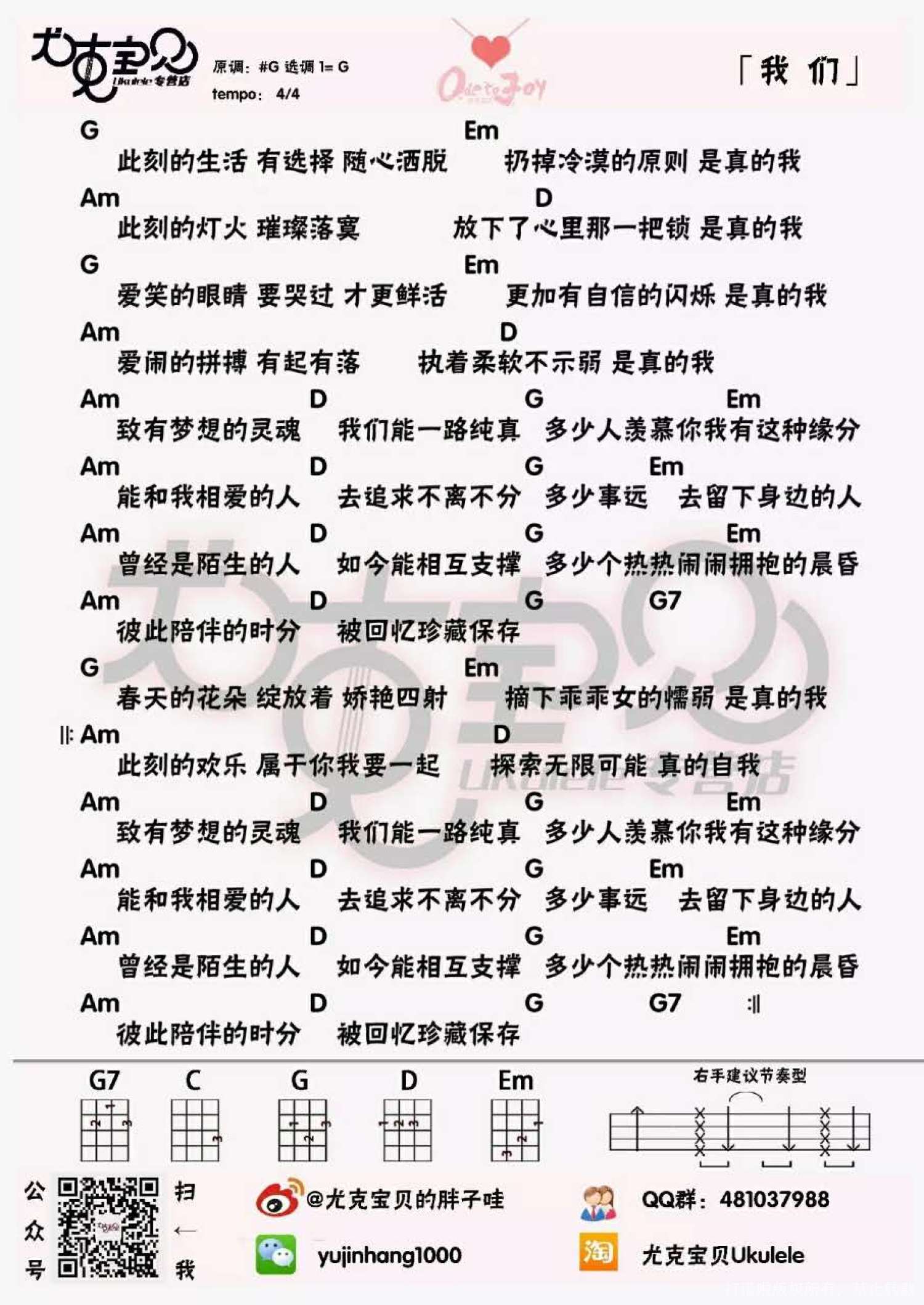 曲谱介绍: 欢乐颂2片尾主题曲《我们》_G调尤克里里谱