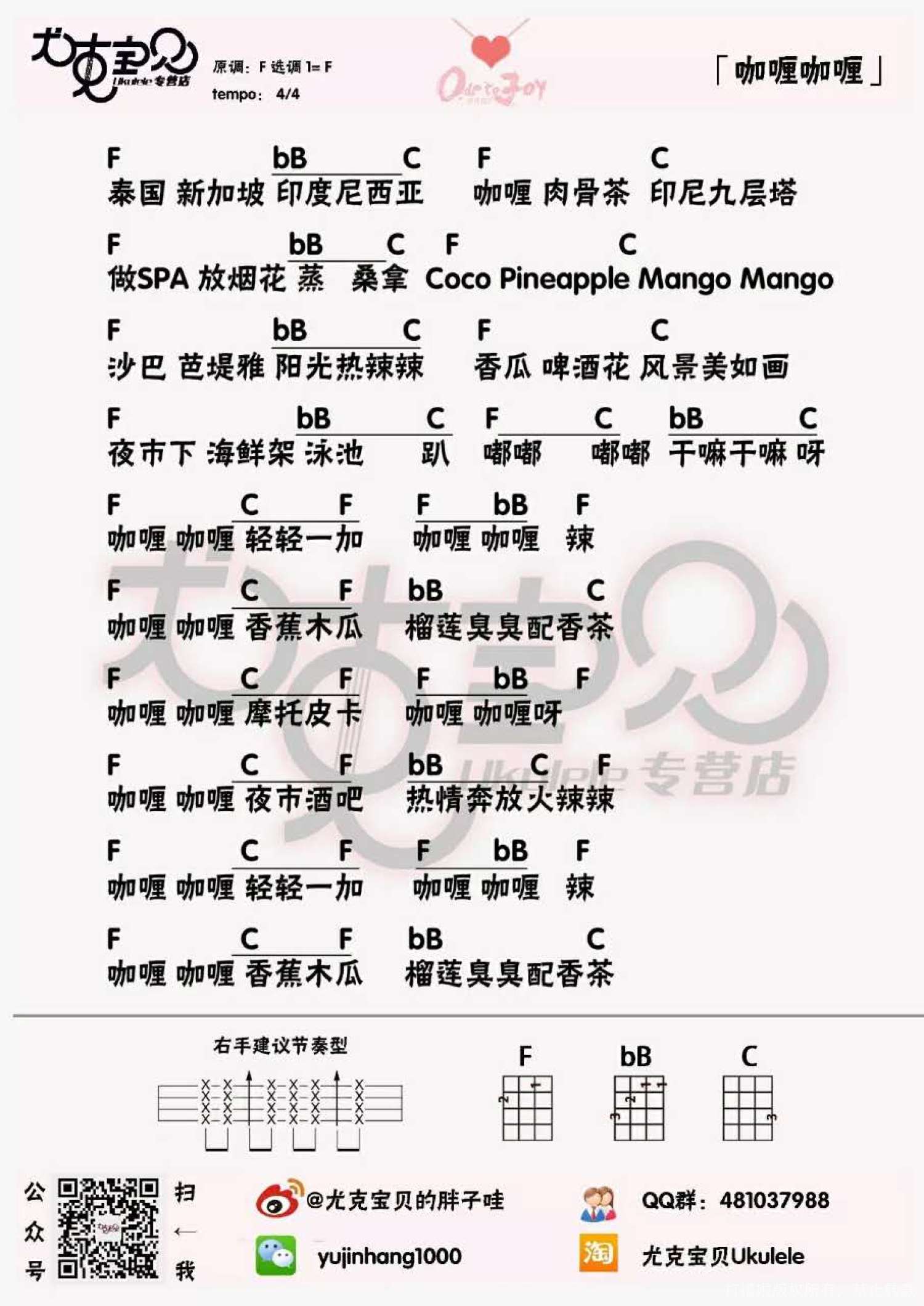 曲谱介绍: 欢乐颂2插曲&牛奶咖啡《咖喱咖喱》_F调尤克里里谱