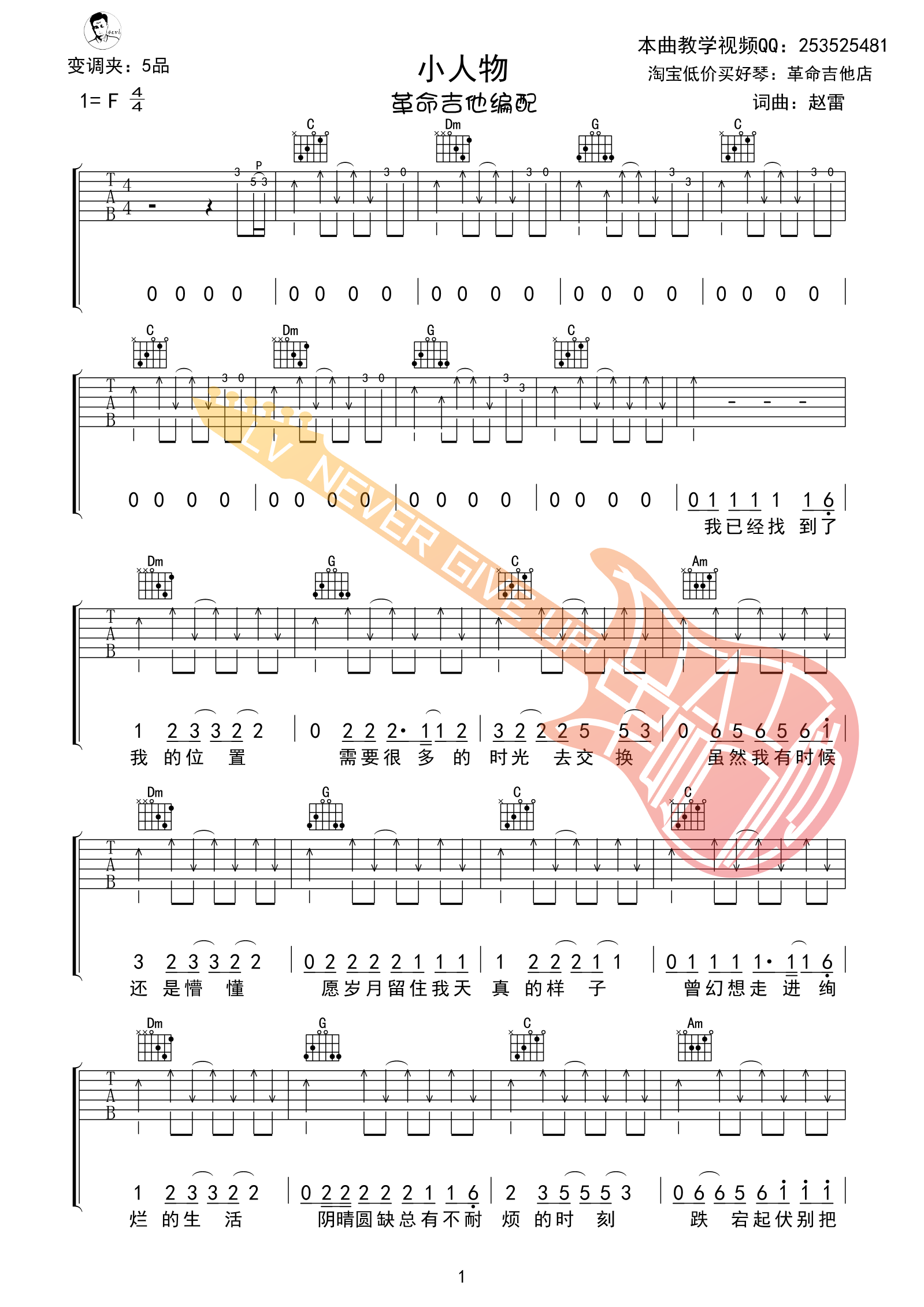 吉他弹唱F调来源:革命吉他143 浏览2024-02-04 14:19发布图谱共5页