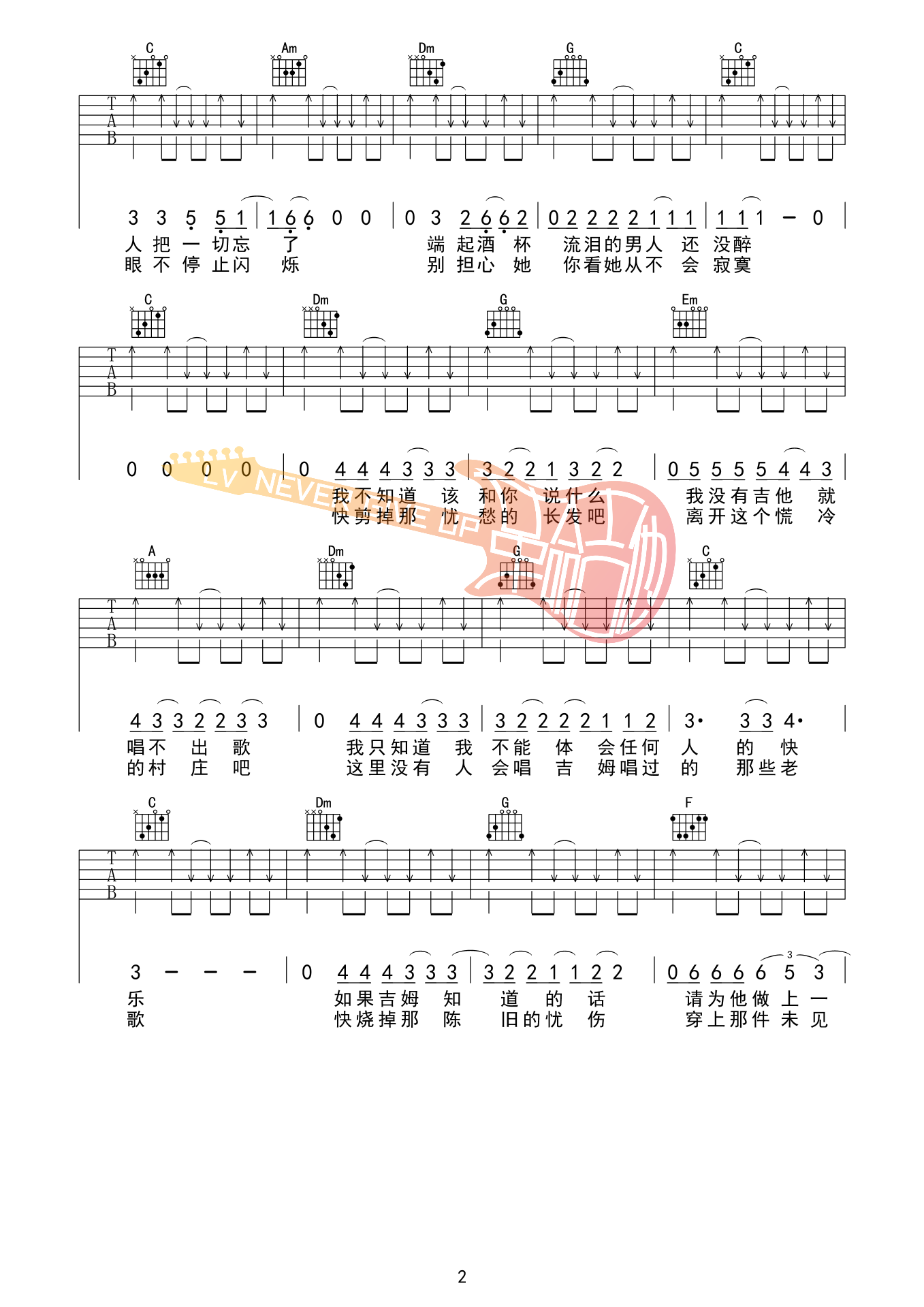 吉他弹唱C调来源:革命吉他421 浏览2024-02-04 14:28发布图谱共4页