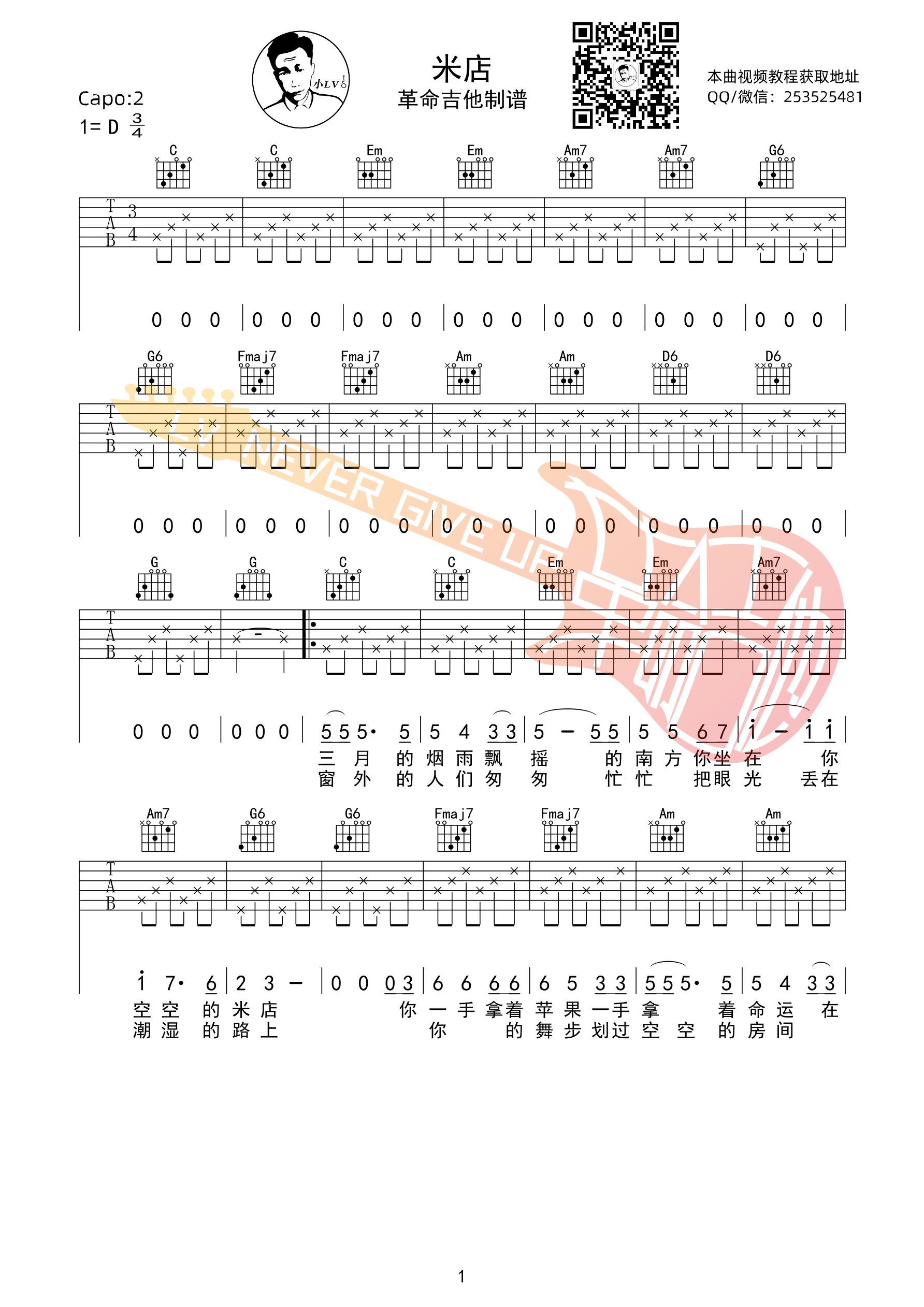 曲谱介绍: 米店吉他谱采用了D调指法,由革命吉他编配完成。这是一首简单的歌曲,但是,他唱进很多人的心里,这是一首普通的歌曲,但是,却让我们很多人被触动,在这首歌曲的演绎之中,歌手的深情让我们每一个人忘却了现实,沉浸在这首歌曲之中,在他的音乐氛围里面,久久不能平静。