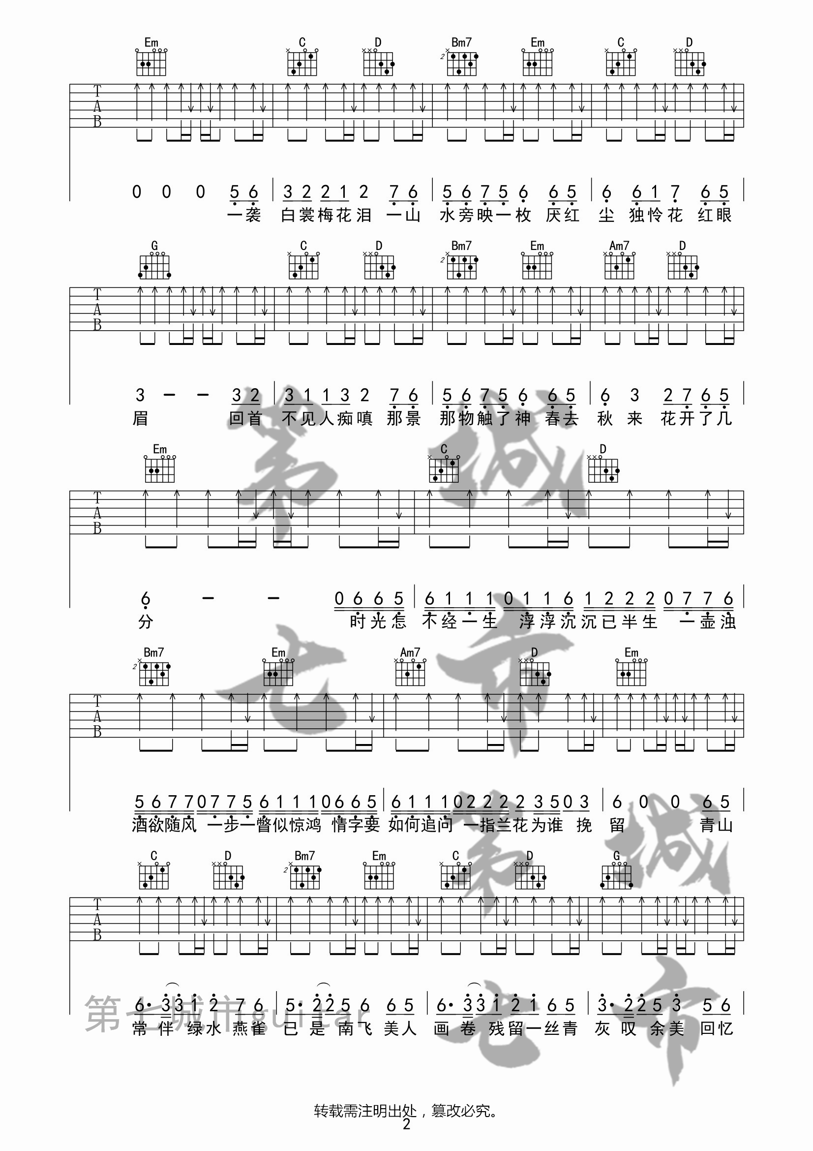 当前位置:琴谱网>吉他弹唱>美人画卷