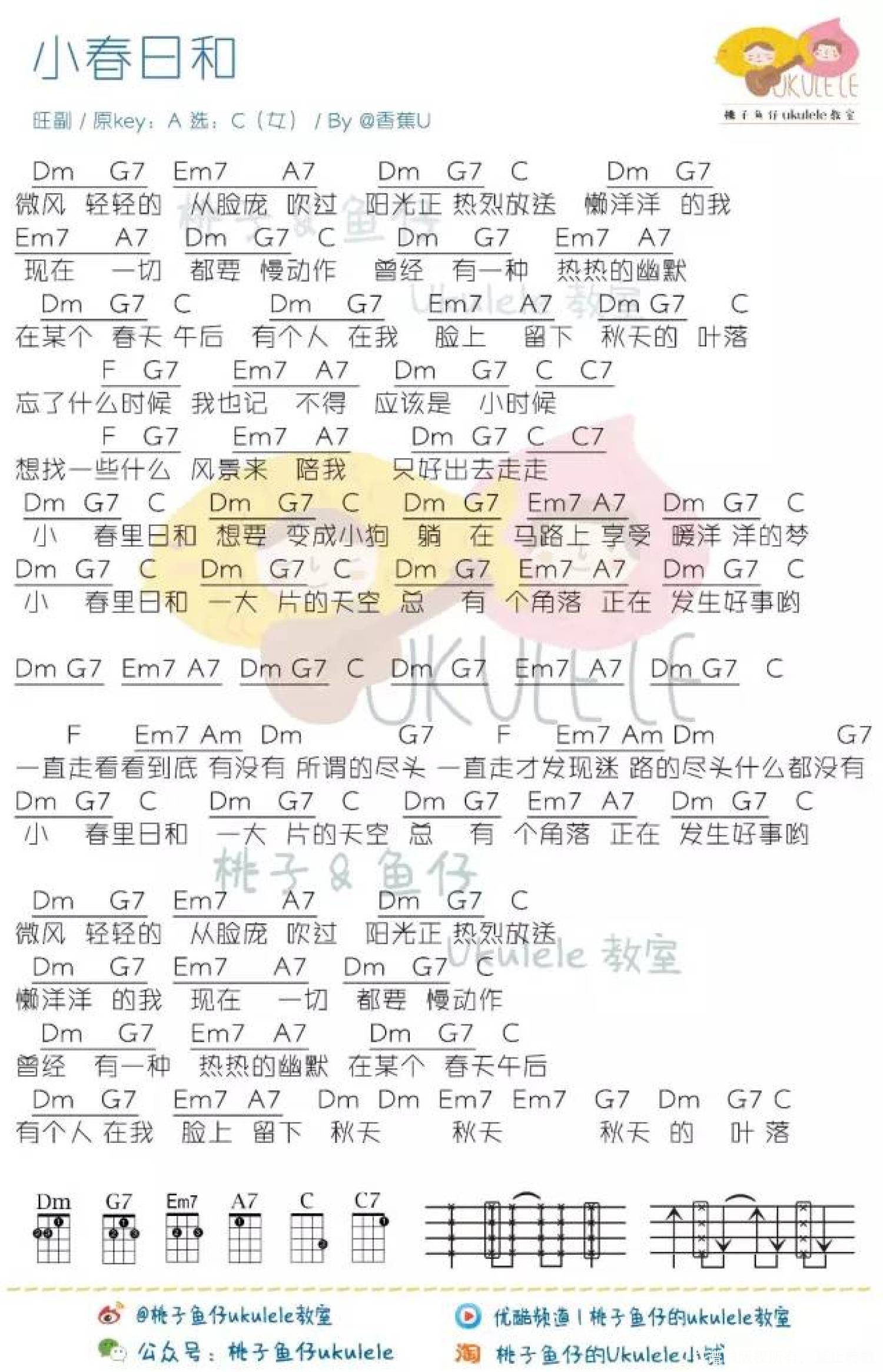 曲谱介绍: 小旺福《小春日和》_C调尤克里里谱_女生版