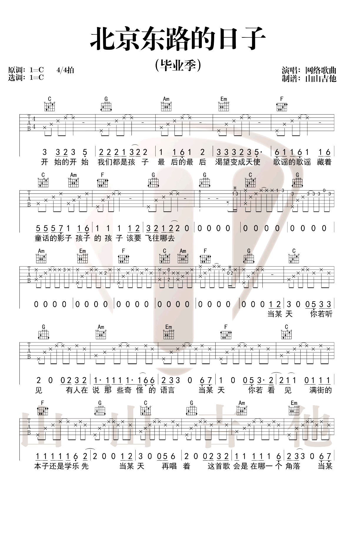 北京东路的日子吉他谱 - 毕业歌曲 - C调吉他弹唱谱