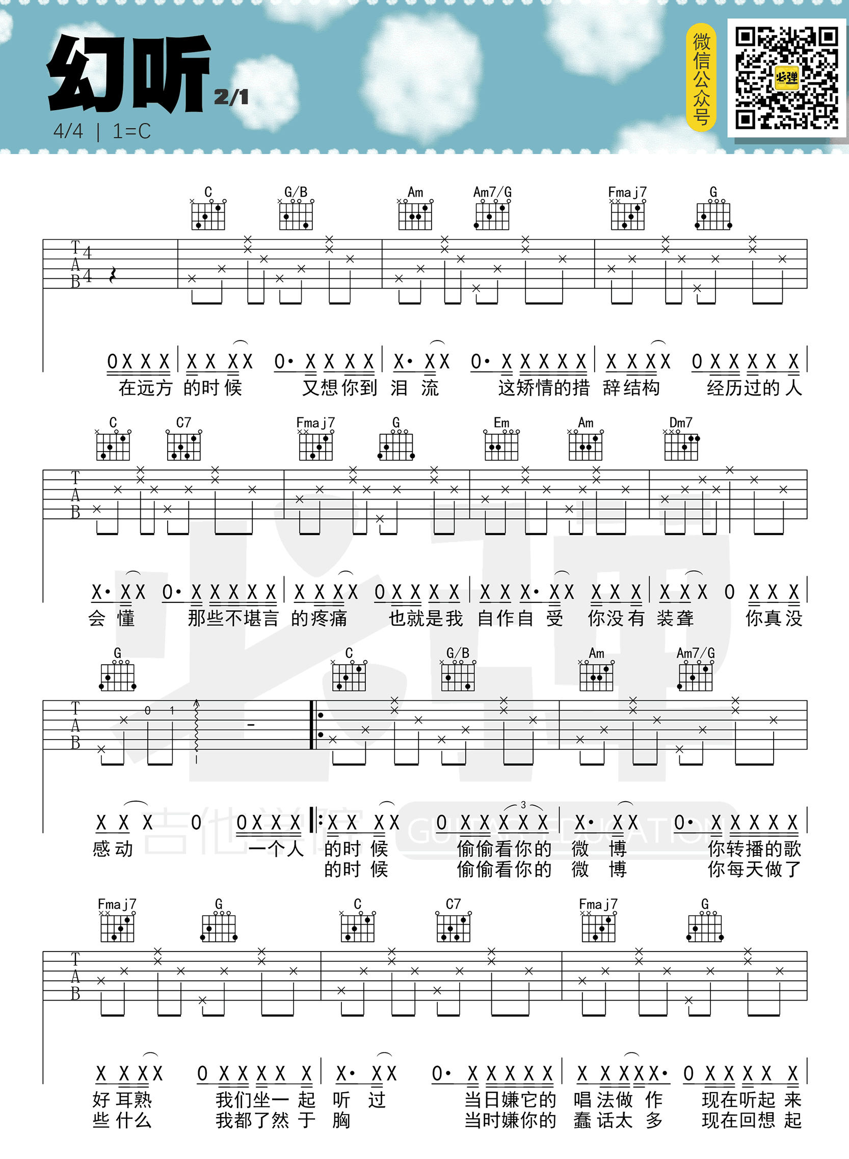 幻听吉他谱 - 许嵩 - C调吉他弹唱谱