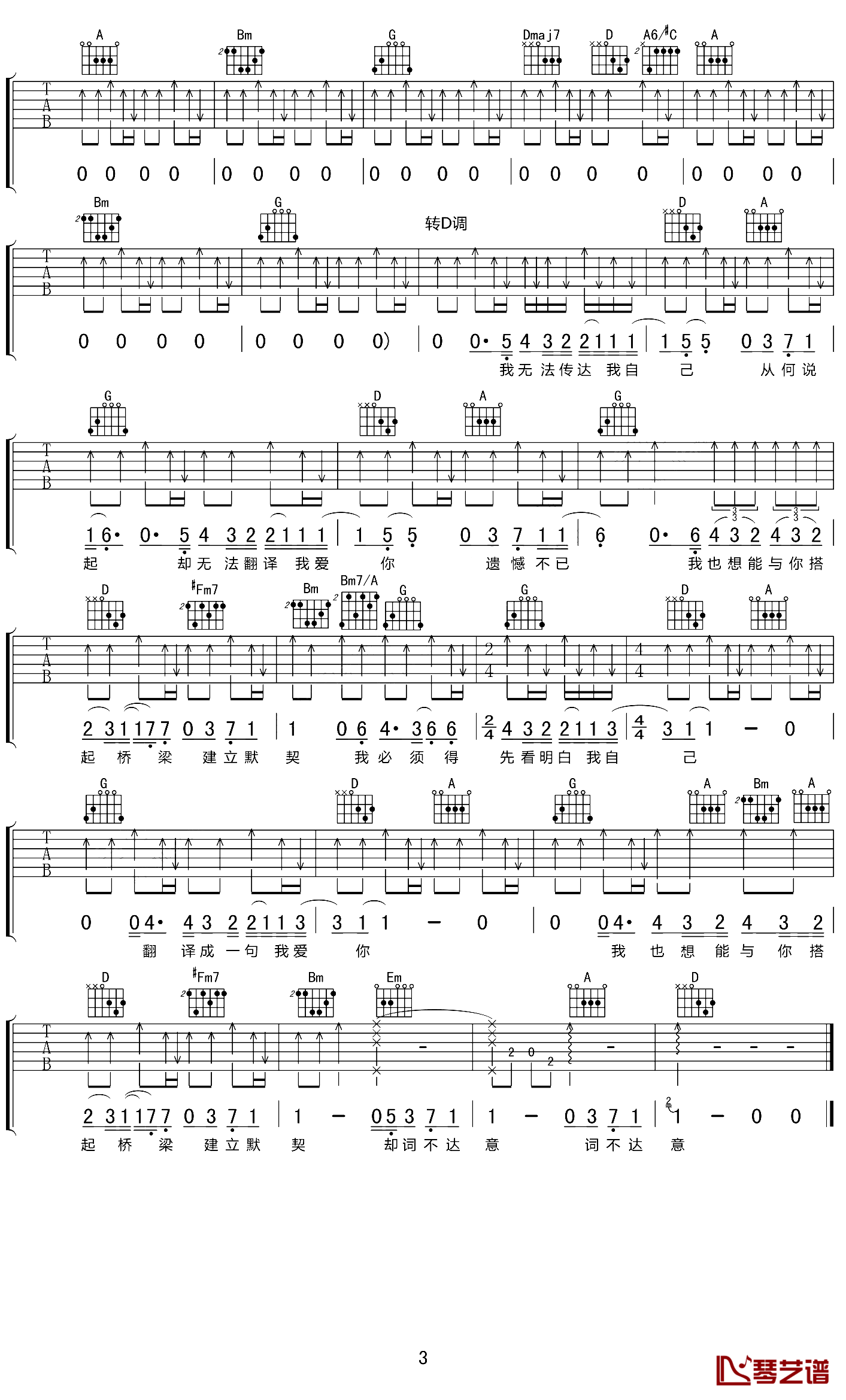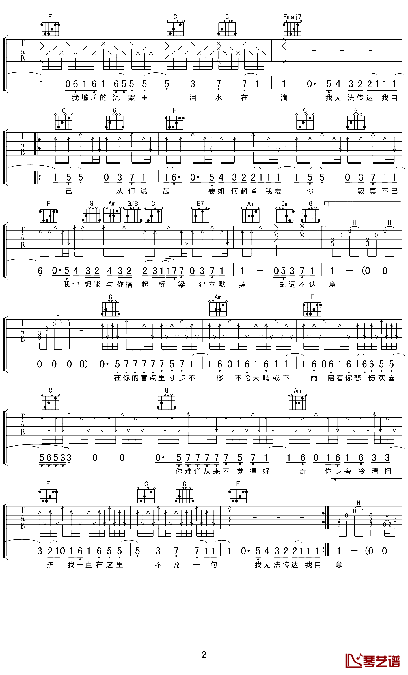 当前位置:琴谱网>吉他弹唱>词不达意