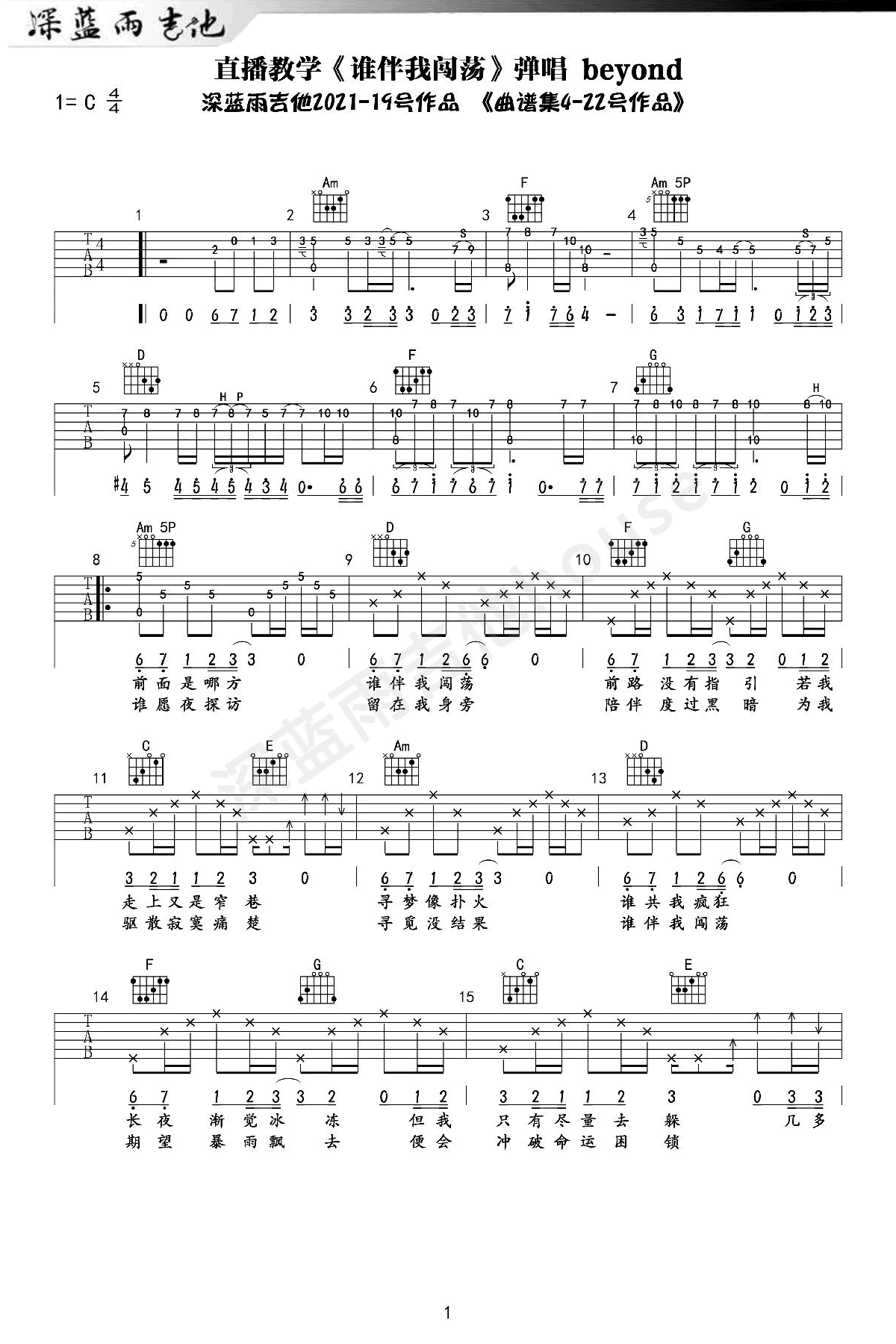 谁伴我闯荡吉他谱 - Beyond - C调吉他弹唱谱