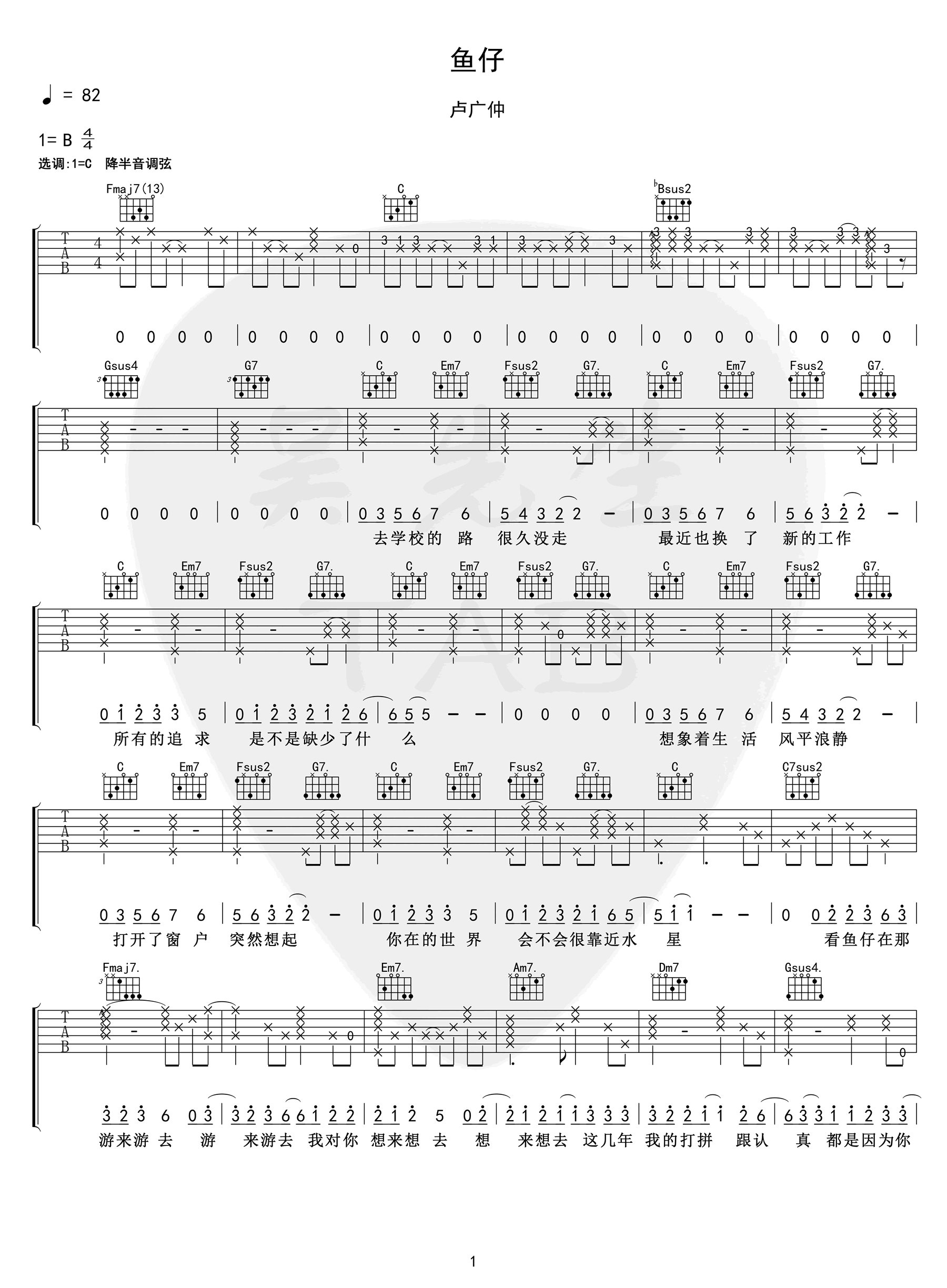 鱼仔吉他谱 - 卢广仲 - C调吉他弹唱谱