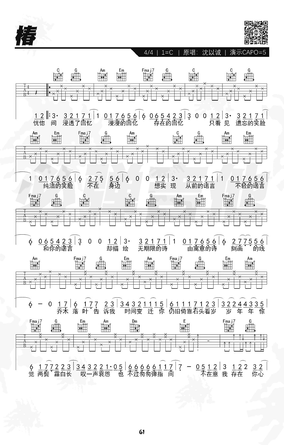 当前位置:琴谱网>吉他弹唱>椿