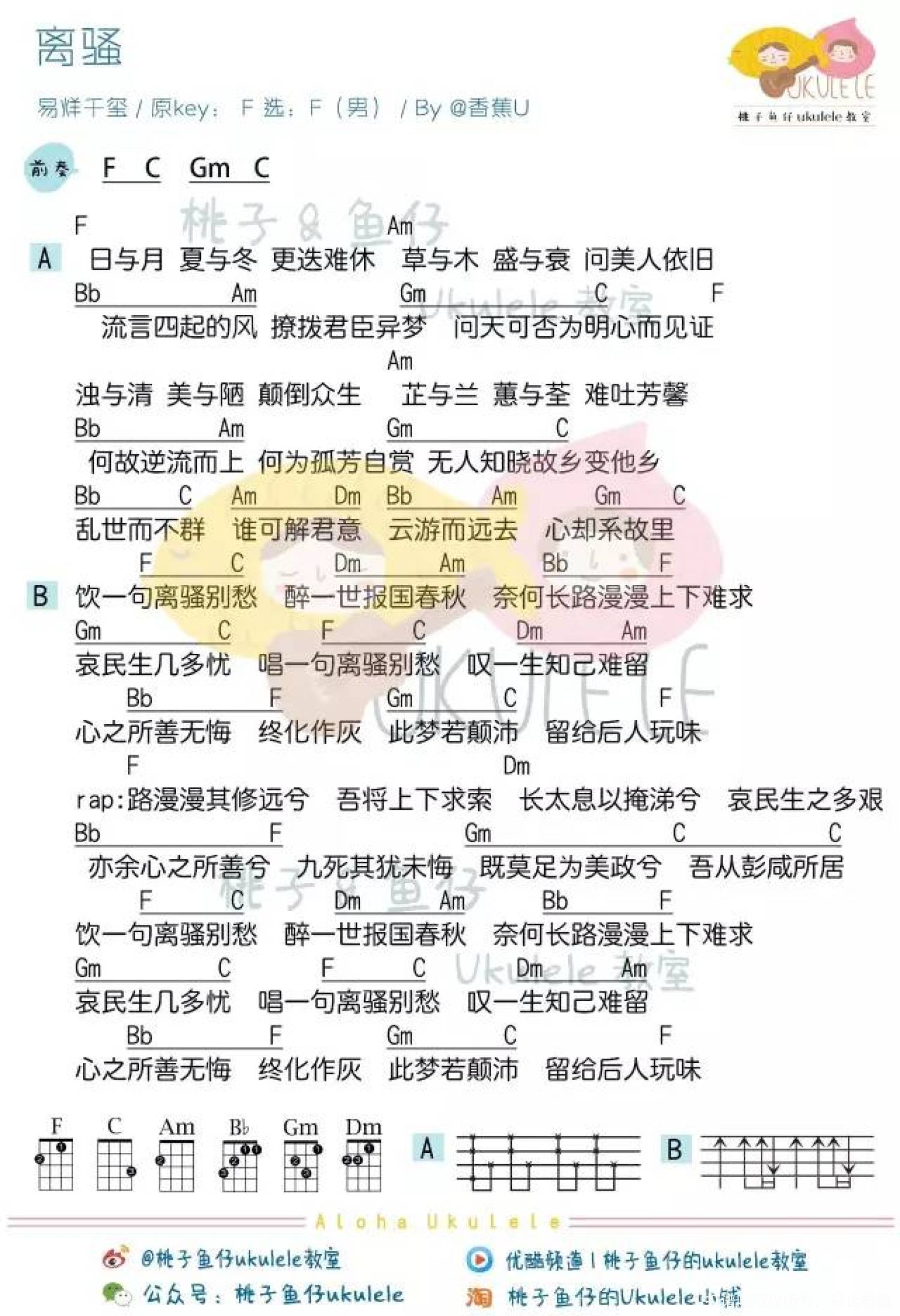 曲谱介绍: 易烊千玺《离骚》_C调尤克里里谱_男生版