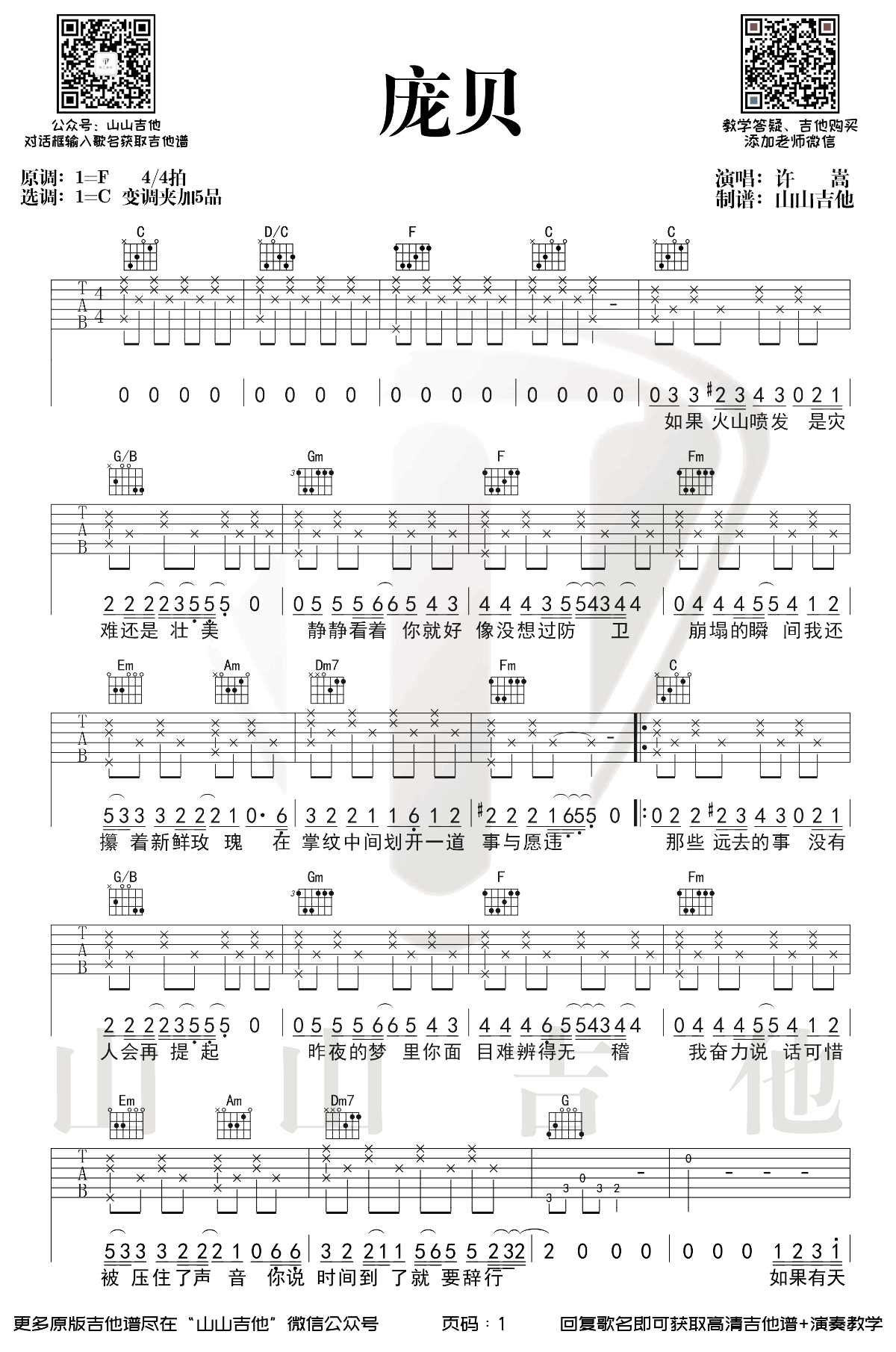 庞贝吉他谱 - 许嵩 - C调吉他弹唱谱