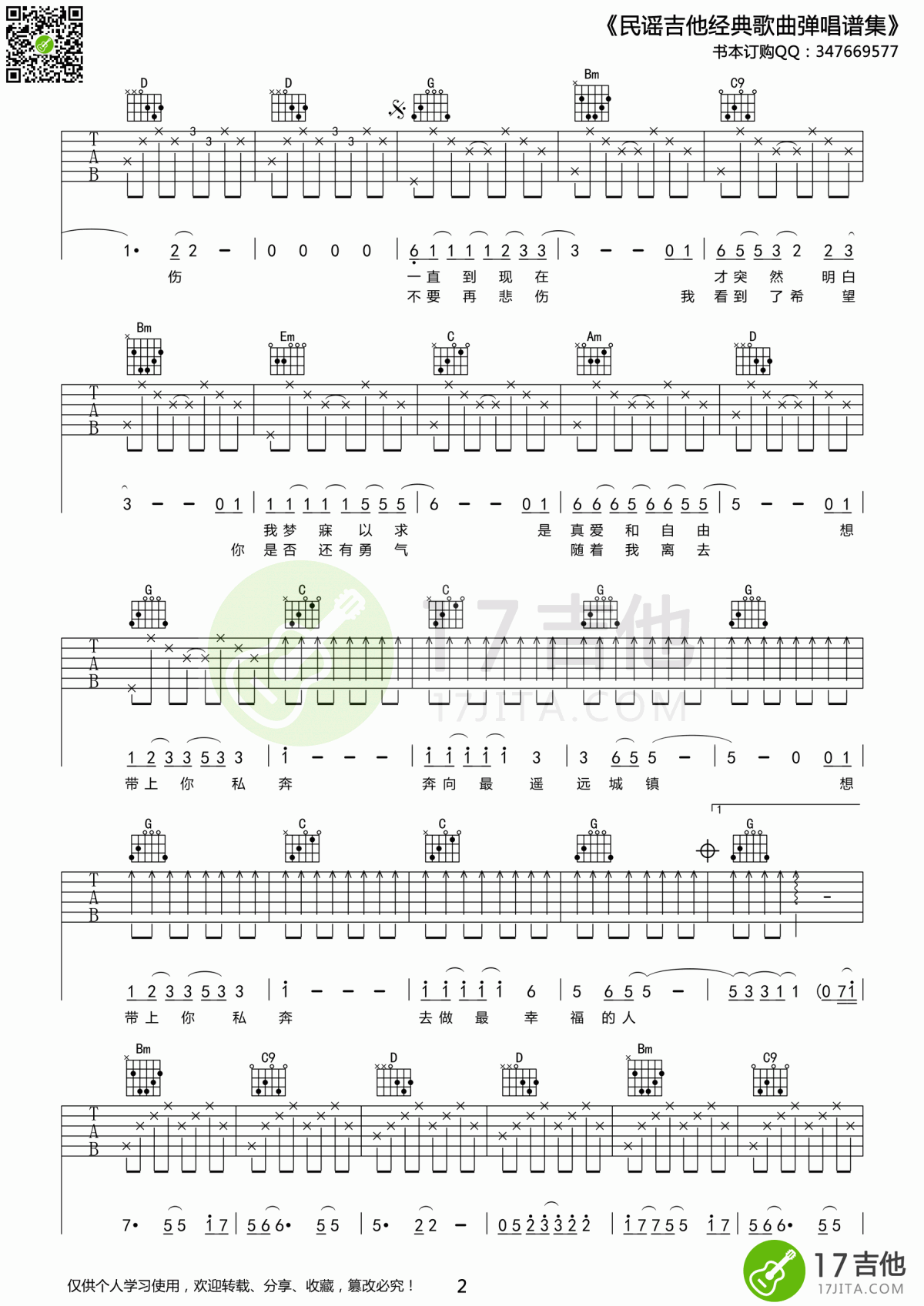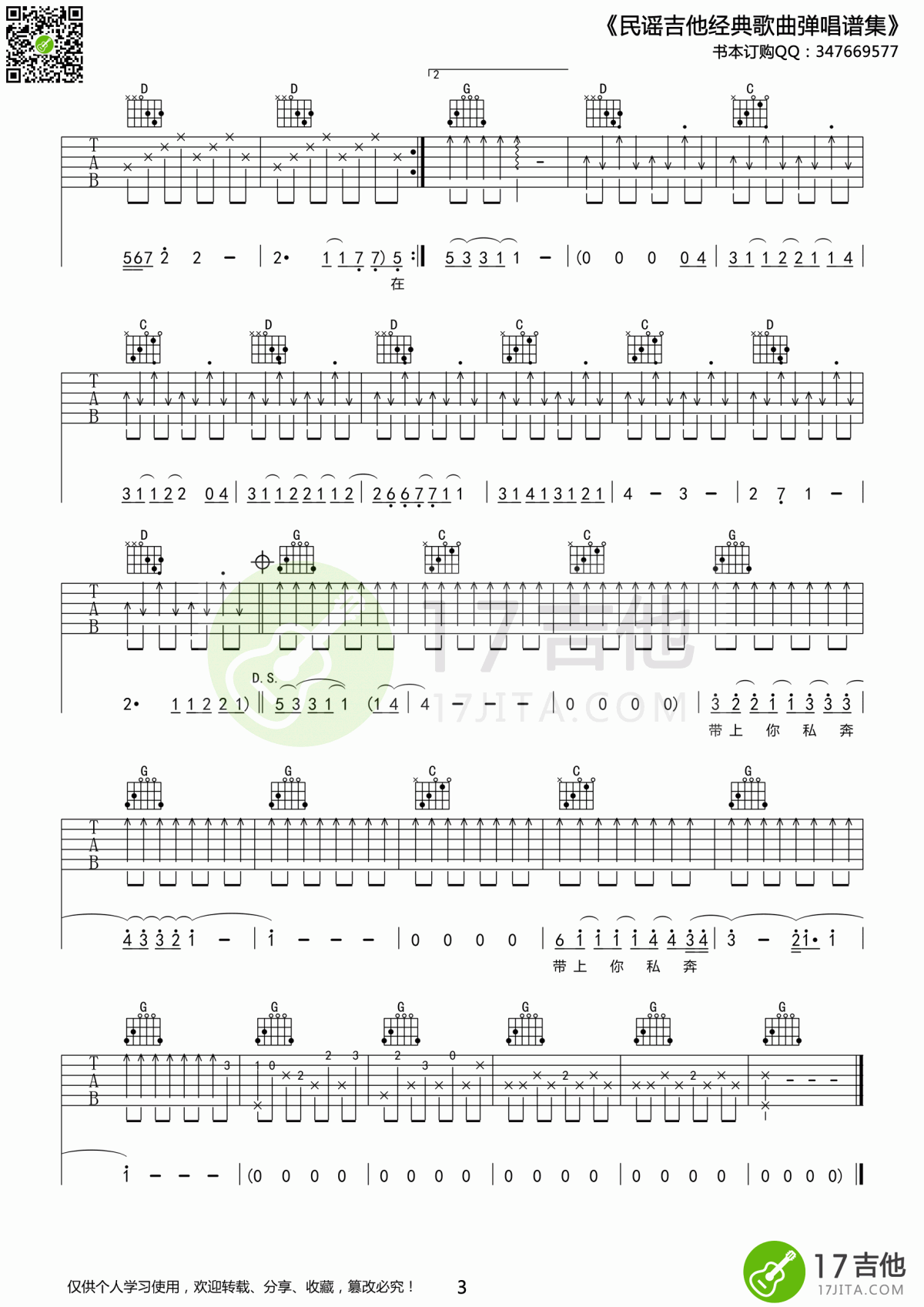 曲谱介绍: 私奔《私奔_》吉他弹唱谱,共有3张高清图谱。