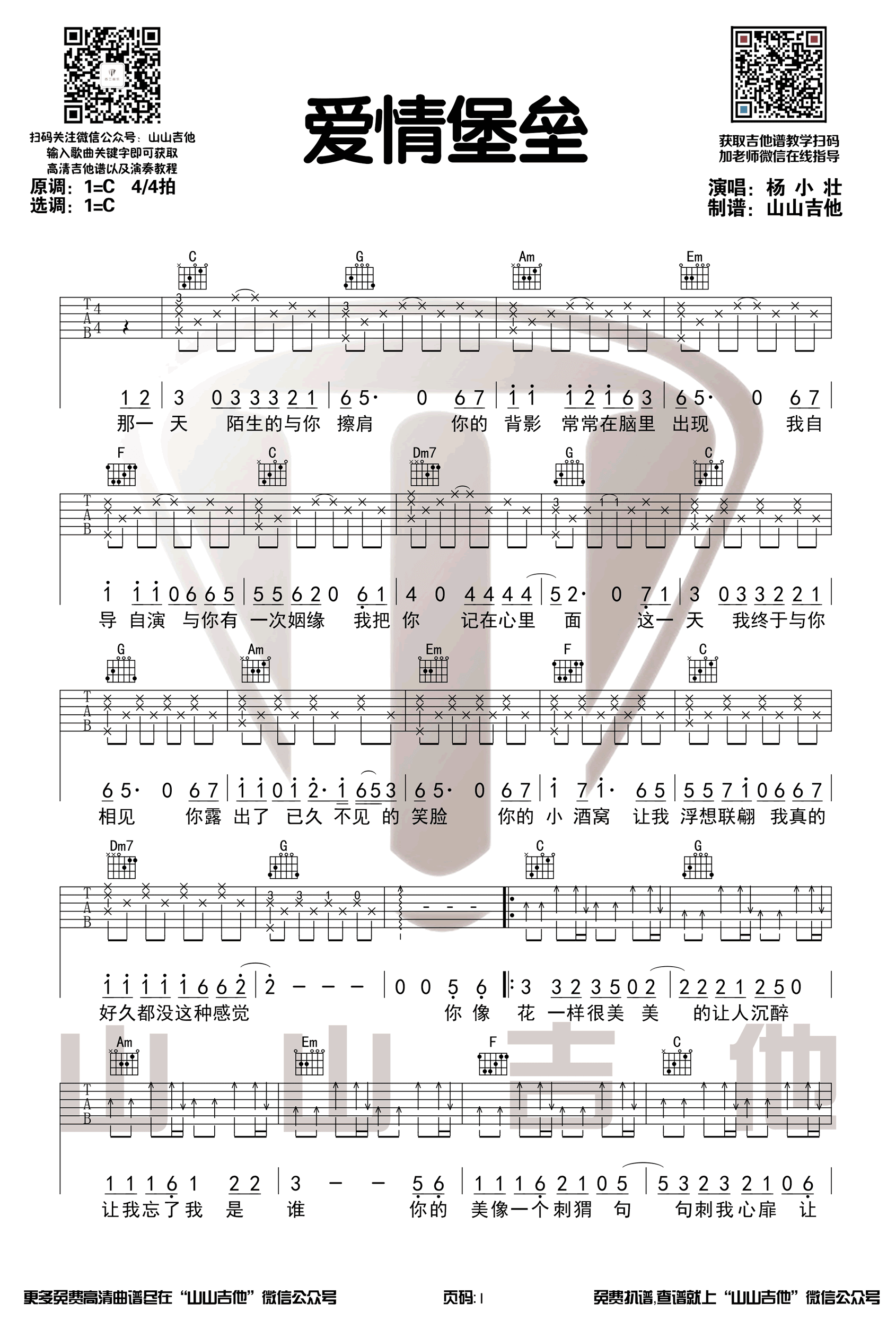 爱情堡垒吉他谱 - 杨小壮 - C调吉他弹唱谱