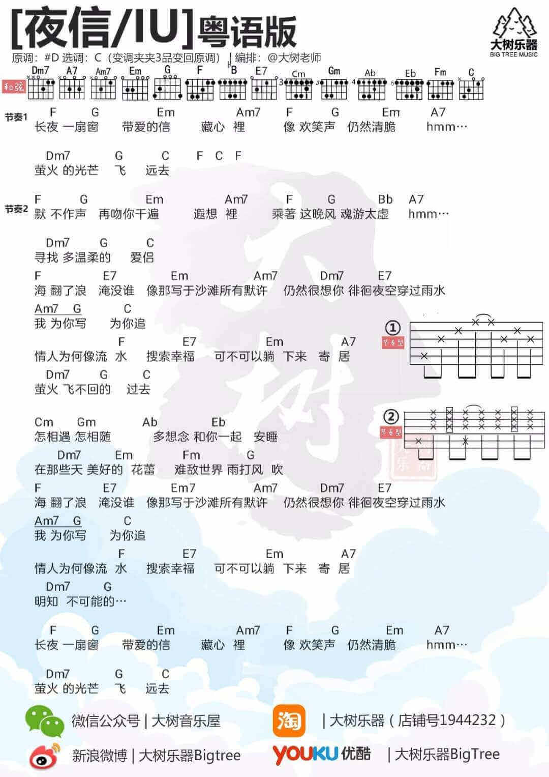 夜信吉他谱 - IU - C调吉他弹唱谱
