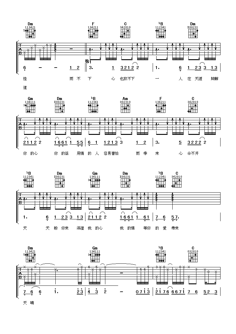 当前位置:琴谱网>吉他弹唱>不下雨就出太阳吧