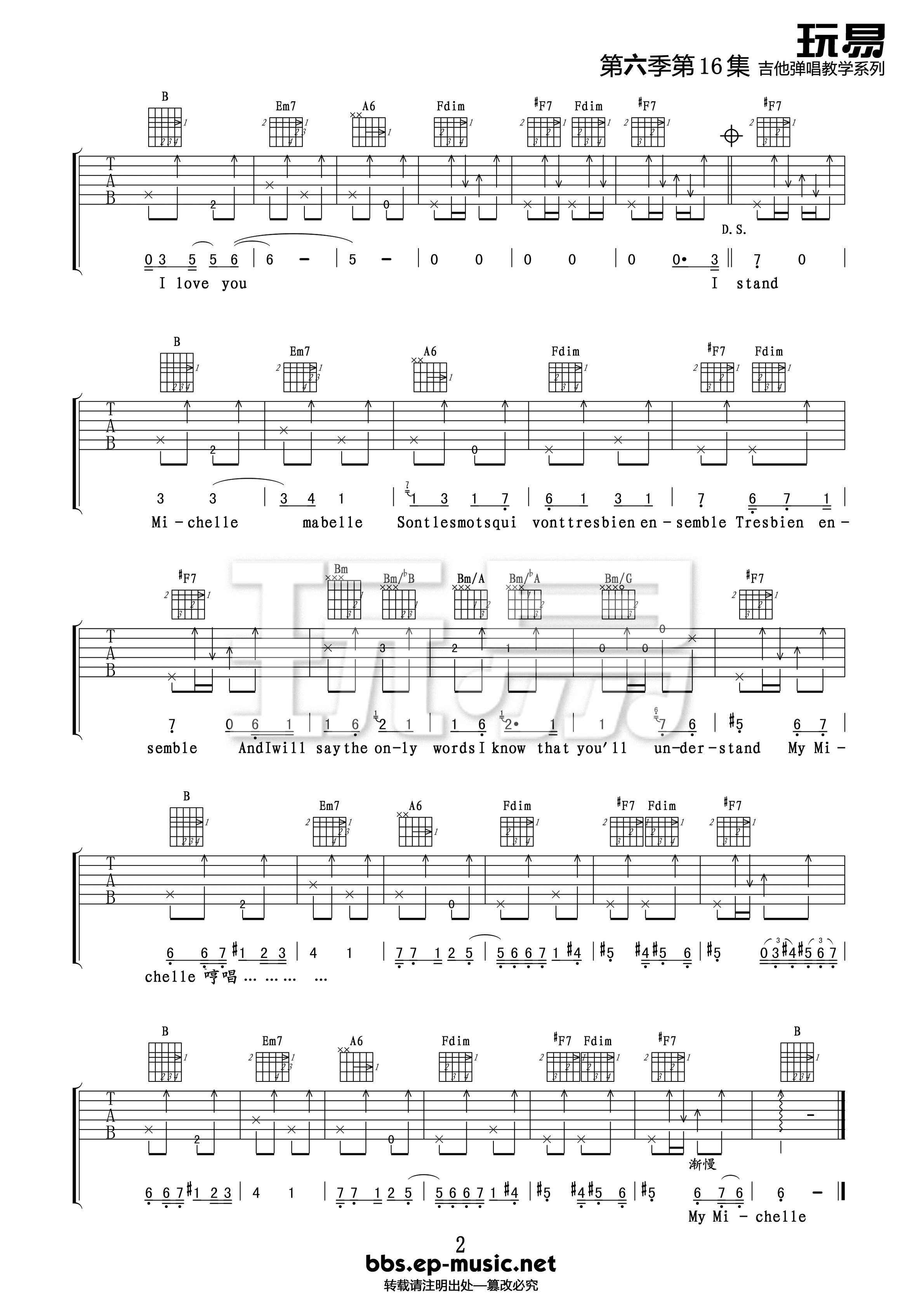 当前位置:琴谱网>吉他弹唱>MichelleA调