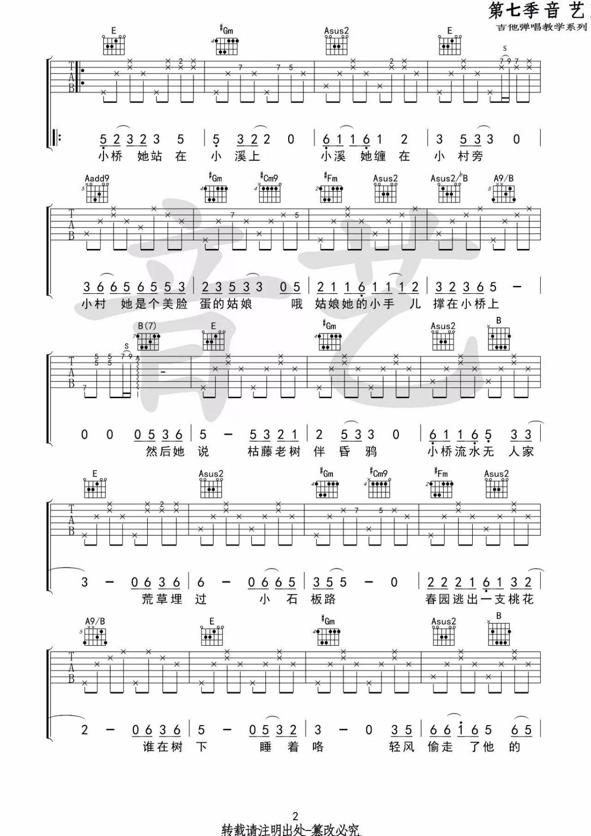 曲谱介绍: 小桥《小桥_》吉他弹唱谱,共有3张高清图谱。