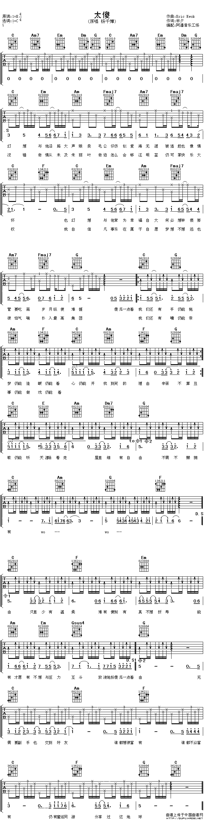 大傻吉他谱 - 杨千桦 - C调吉他弹唱谱